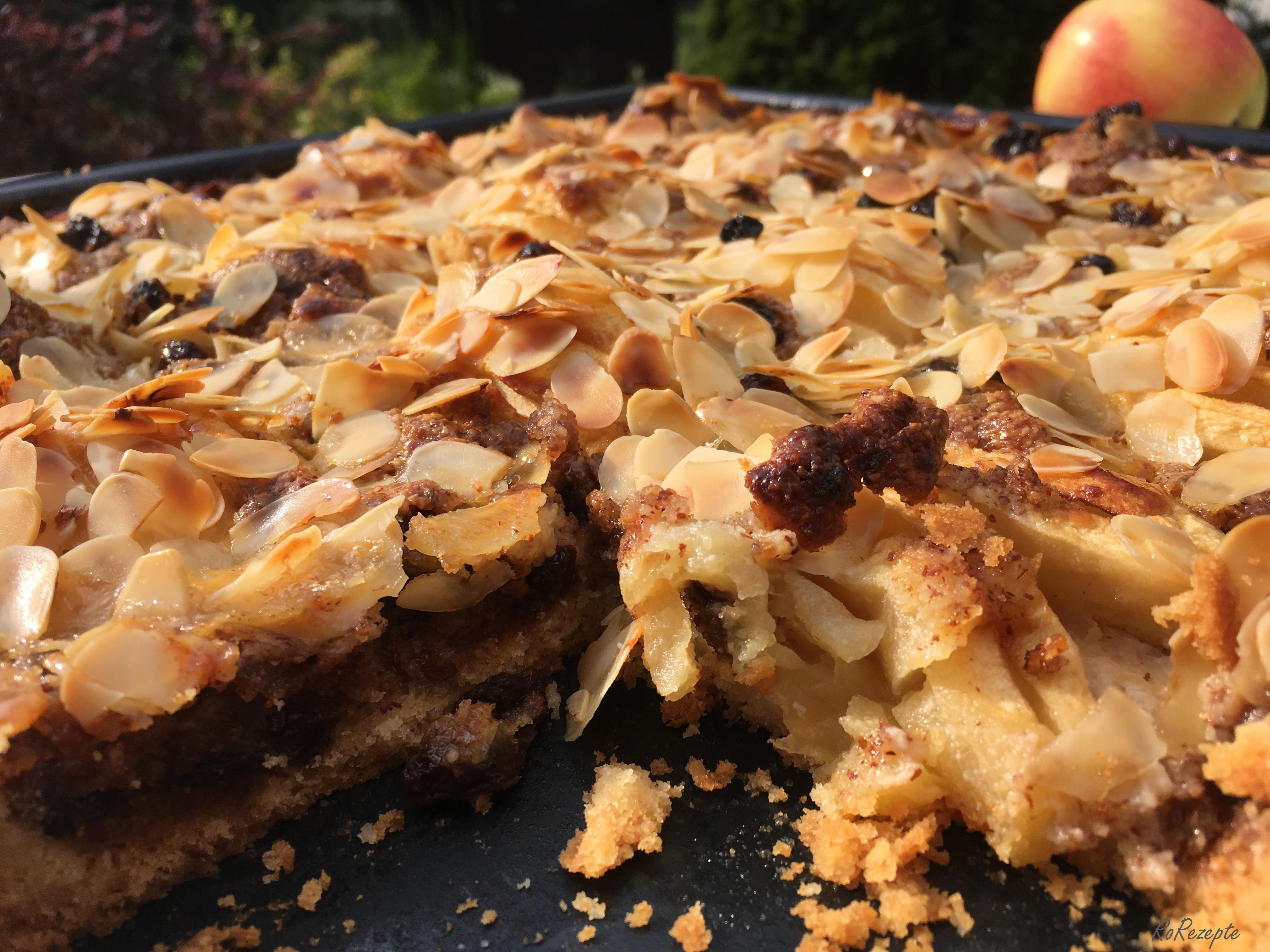 Äpfel auflegen mit Guss übergießen Mandelcreme verteilen Mandelcreme verteilen - Mandelblätter aufstreuen und im Backofen bei ca. 180° C ca. 40 Minuten backen.
