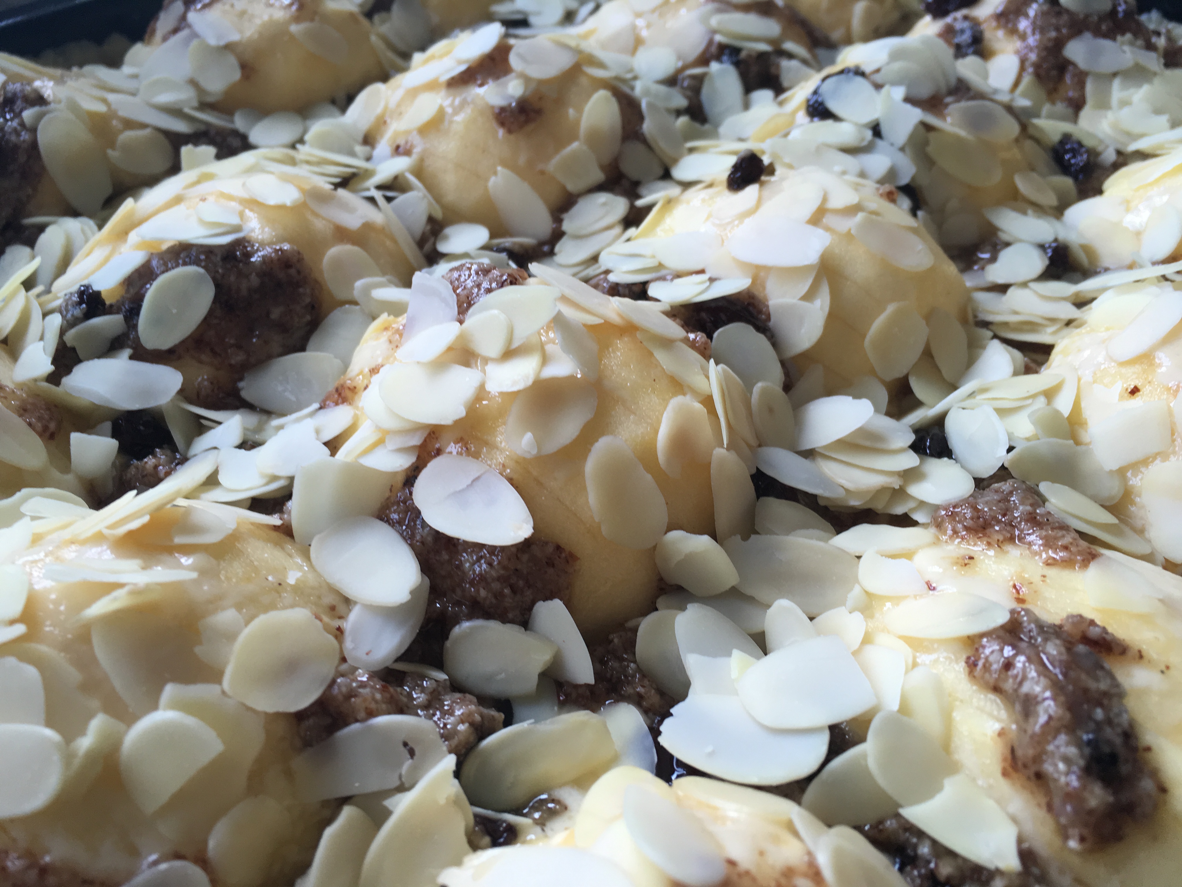 Ich persönlich mag eigentlich gar keine Rosinen, aber davon sollte sich keiner abschrecken lassen. Mit der Kombination durch die Mandelcreme hatte ich beim Ergebnis damit überhaupt keine Probleme und empfehle hiermit: trotzdem mitbacken. Einfach nur lecker 🙂