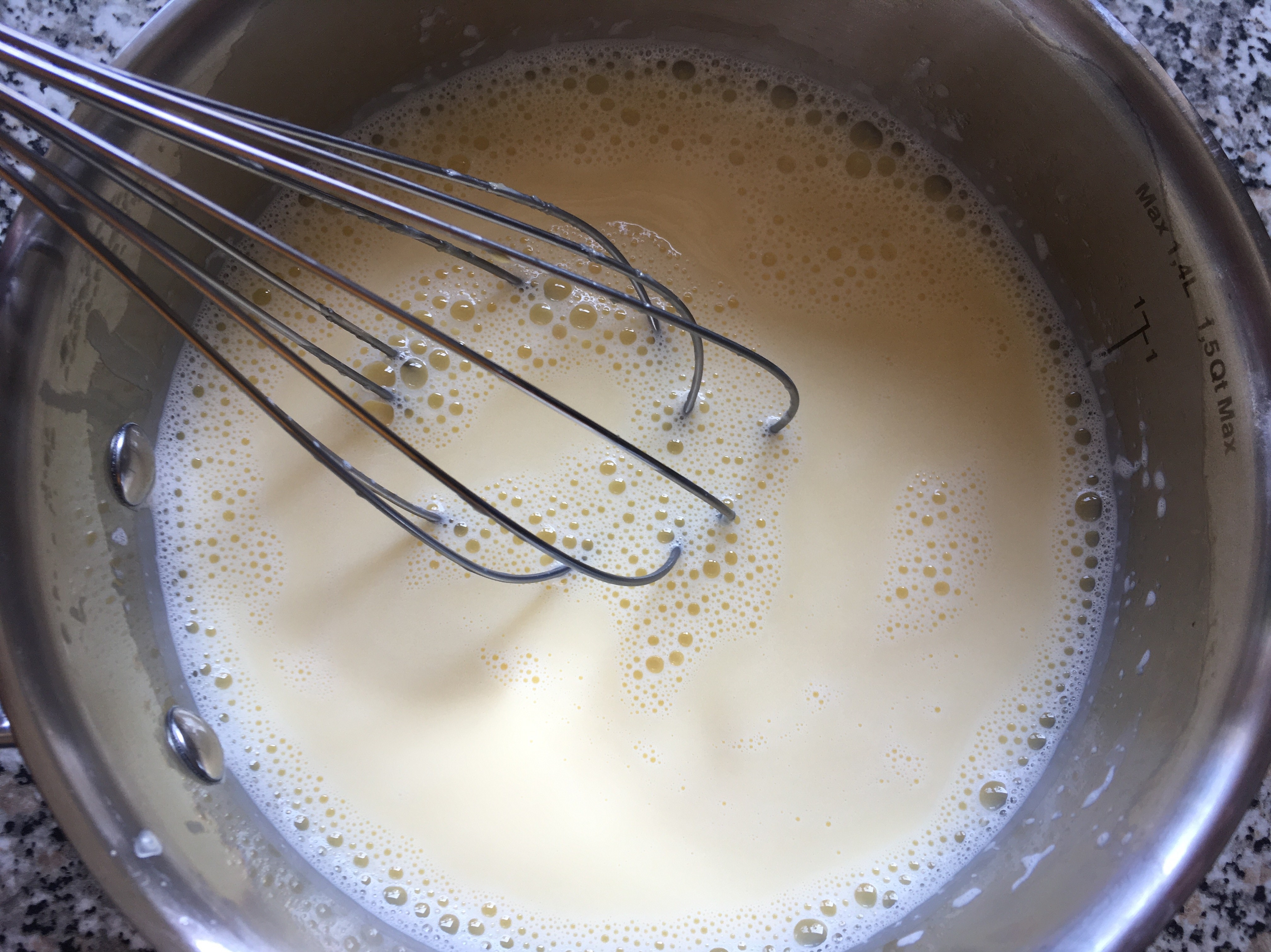 Zutaten für den Teig Teigkugel - Für die Füllung den Vanillepudding mit einer Prise Salz kochen und etwas abkühlen lassen.