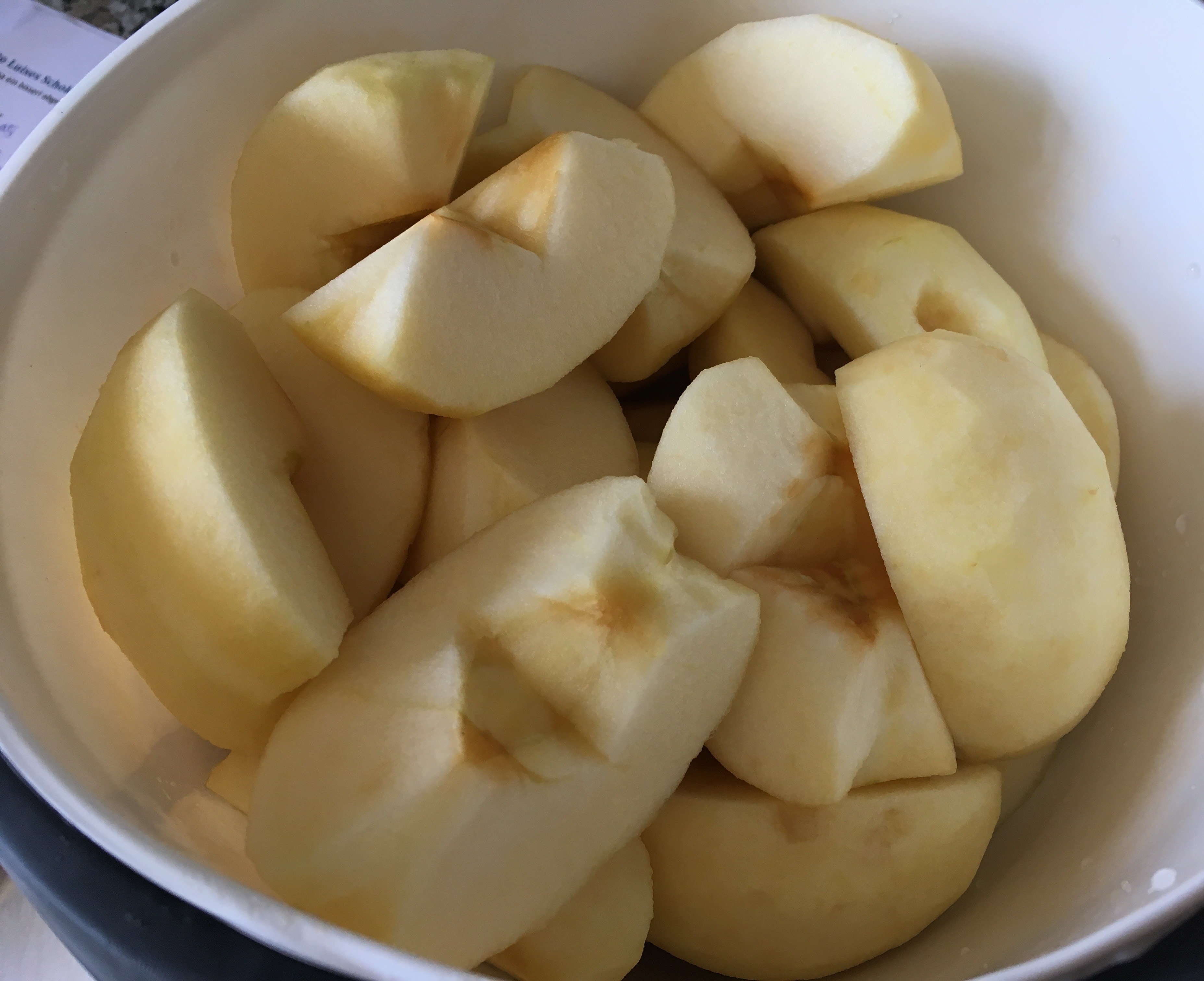 In Totenweg selber ist leider kein Rezept abgebildet, aber Romy Fölck hatte ein passendes Apfelkuchenrezept parat, das ich unbedingt probieren musste. Und es hat sich gelohnt: der Apfelkuchen ist super lecker und fluffig. Außerdem sind Äpfel ja gesund… also auch der Kuchen… 😉