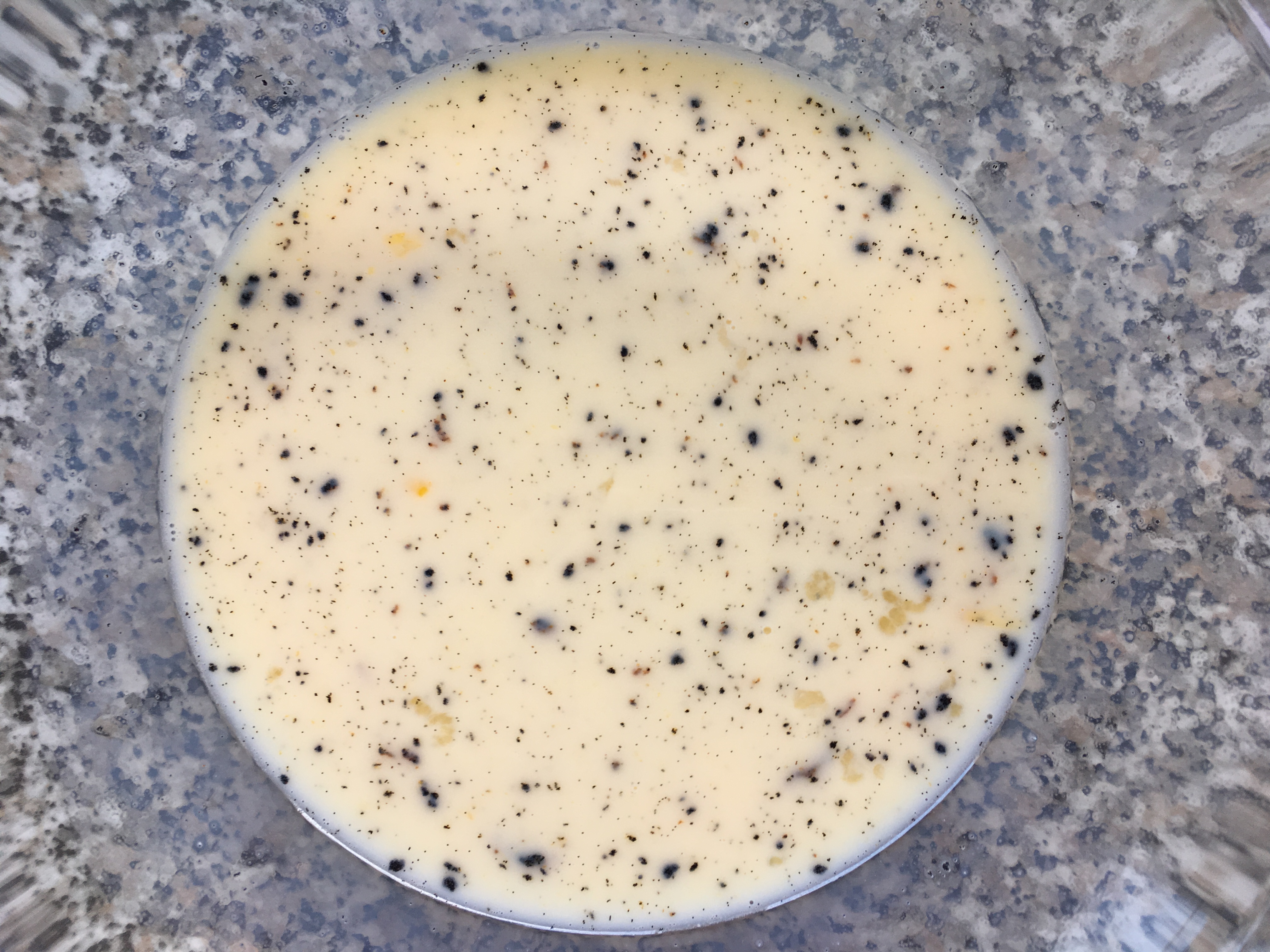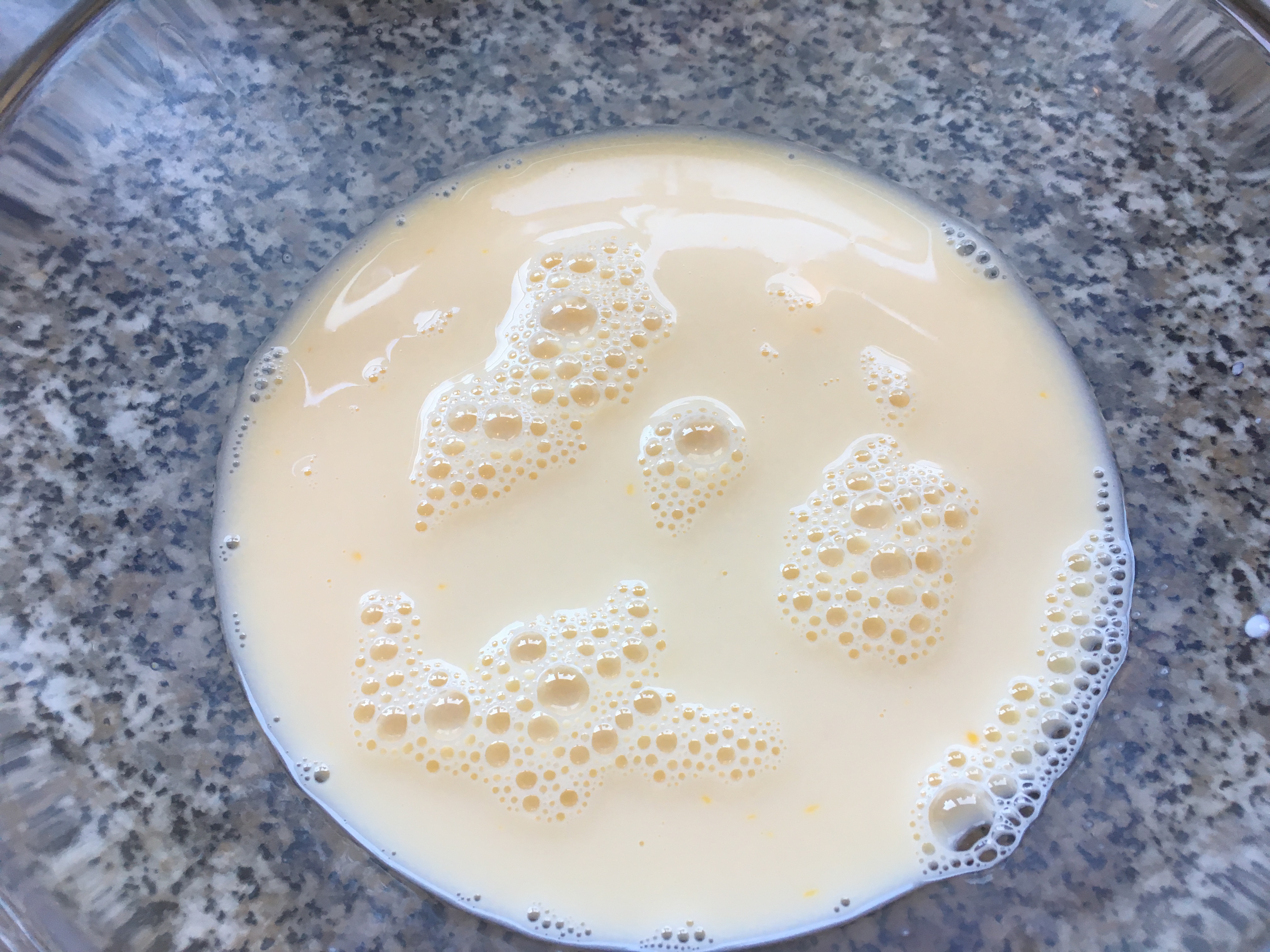- Ei und Eigelb in einer Schüssel mit der Milch vermengen,