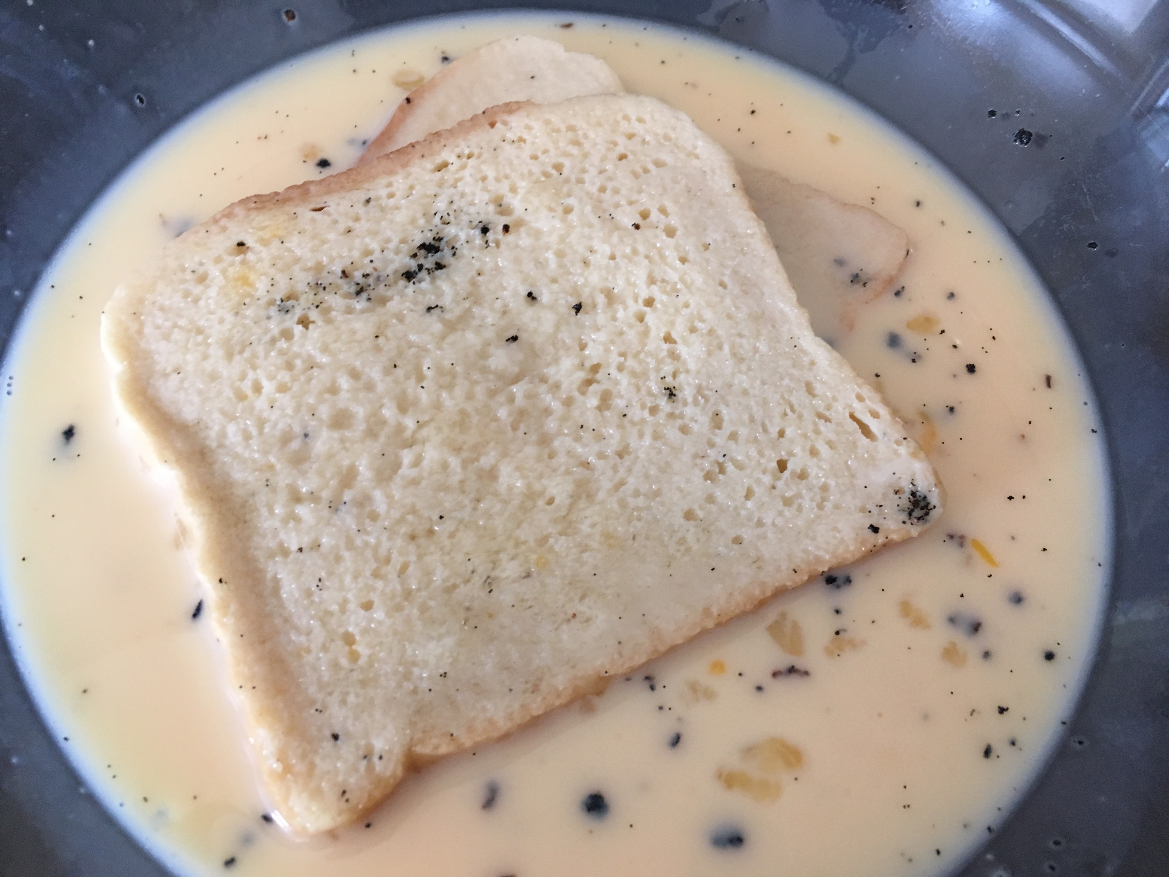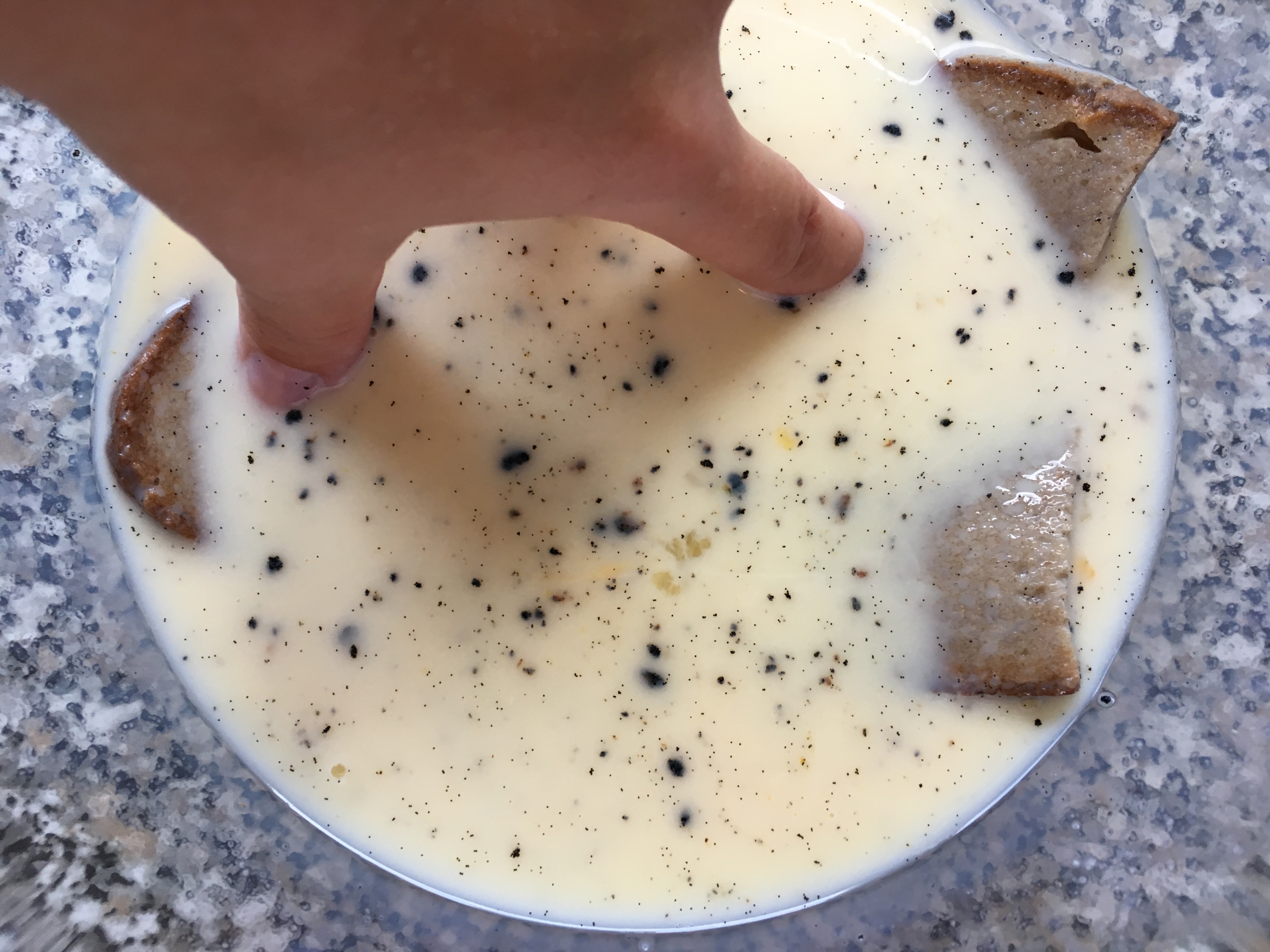 Vanillemark zufügen Verrühren - Die Brotscheiben mehrmals darin wenden, bis diese die Flüssigkeit aufgesogen haben.