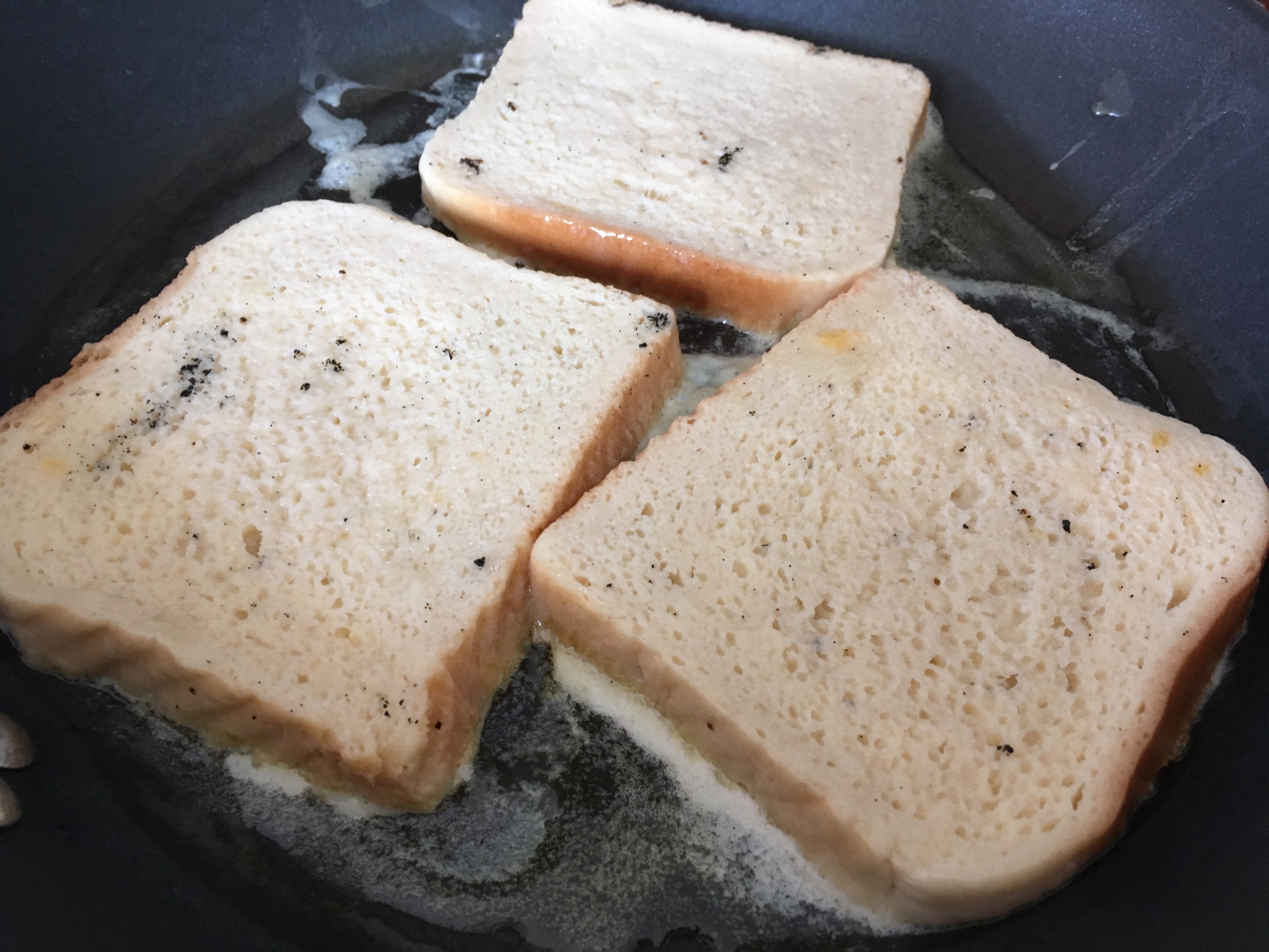Brot tunken Weißbrot tunken Weißbrot tunken - In einer Pfanne die Butter erhitzen und die Brotscheiben von beiden Seiten darin anrösten. Bei Bedarf Flüssigkeit nachträufeln.