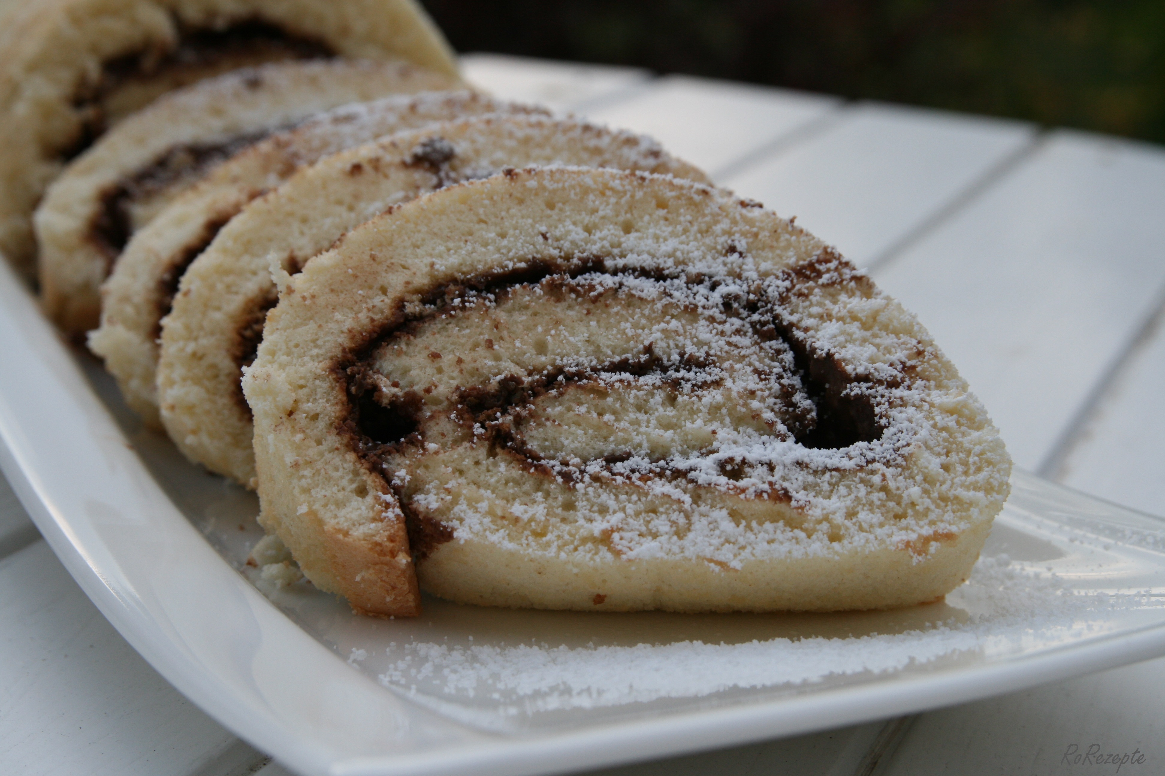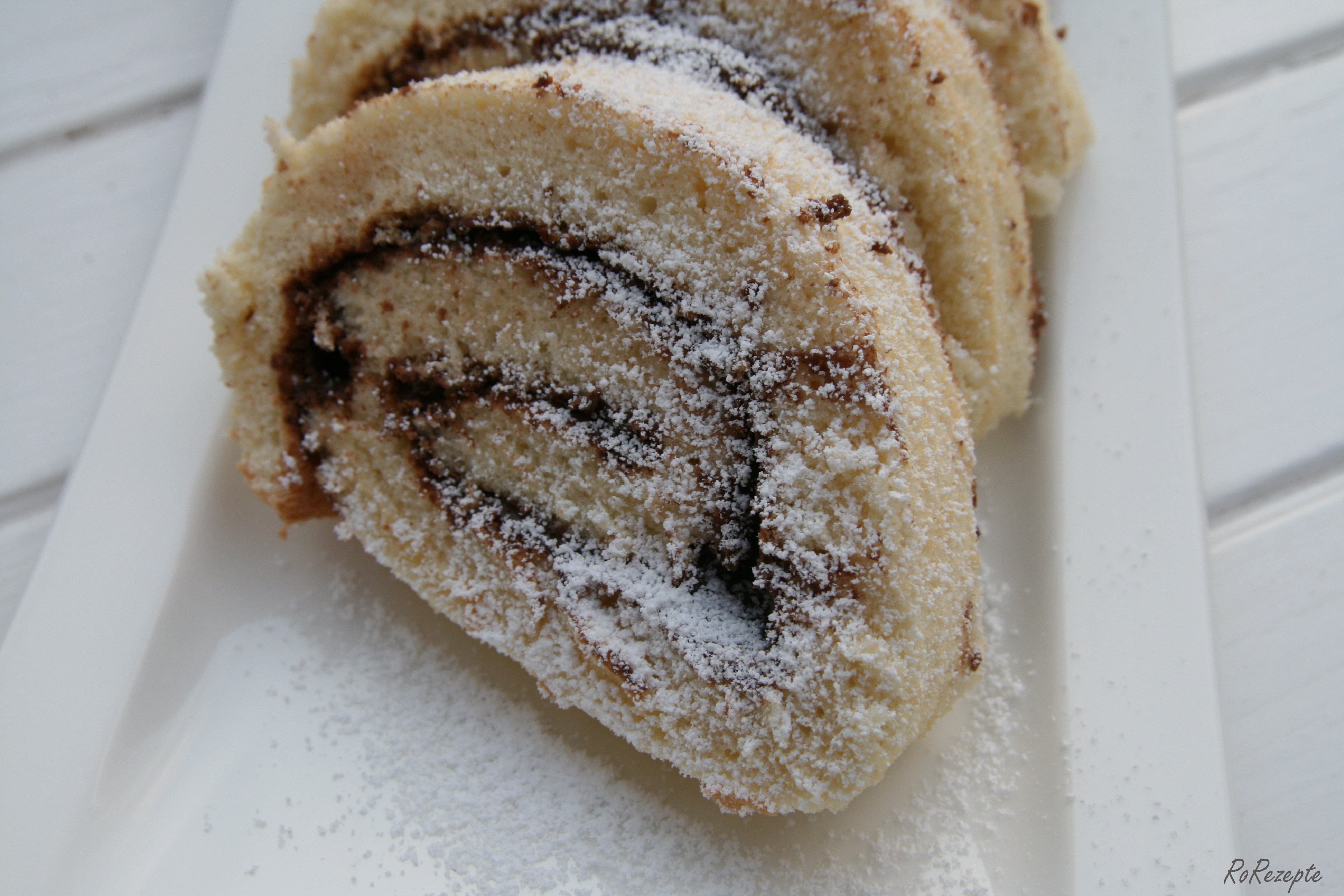 Biskuitroulade.. oder Biskuitrolle, eine locker leichte Süßspeise bzw. Mehlspeise.