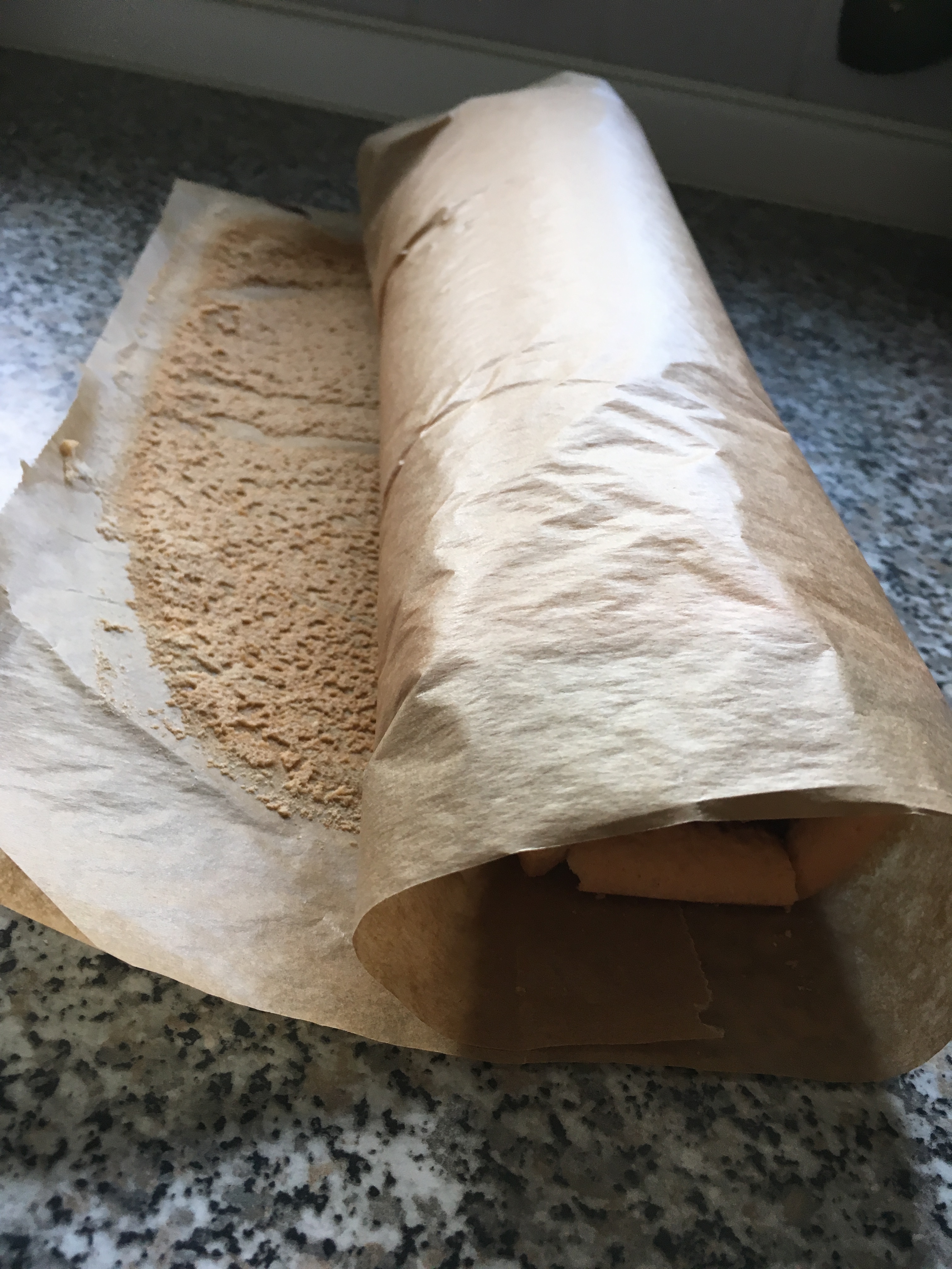 8. noch warm einrollen und mit Staubzucker bestäuben. Vorsichtig rollen, damit nichts reist.