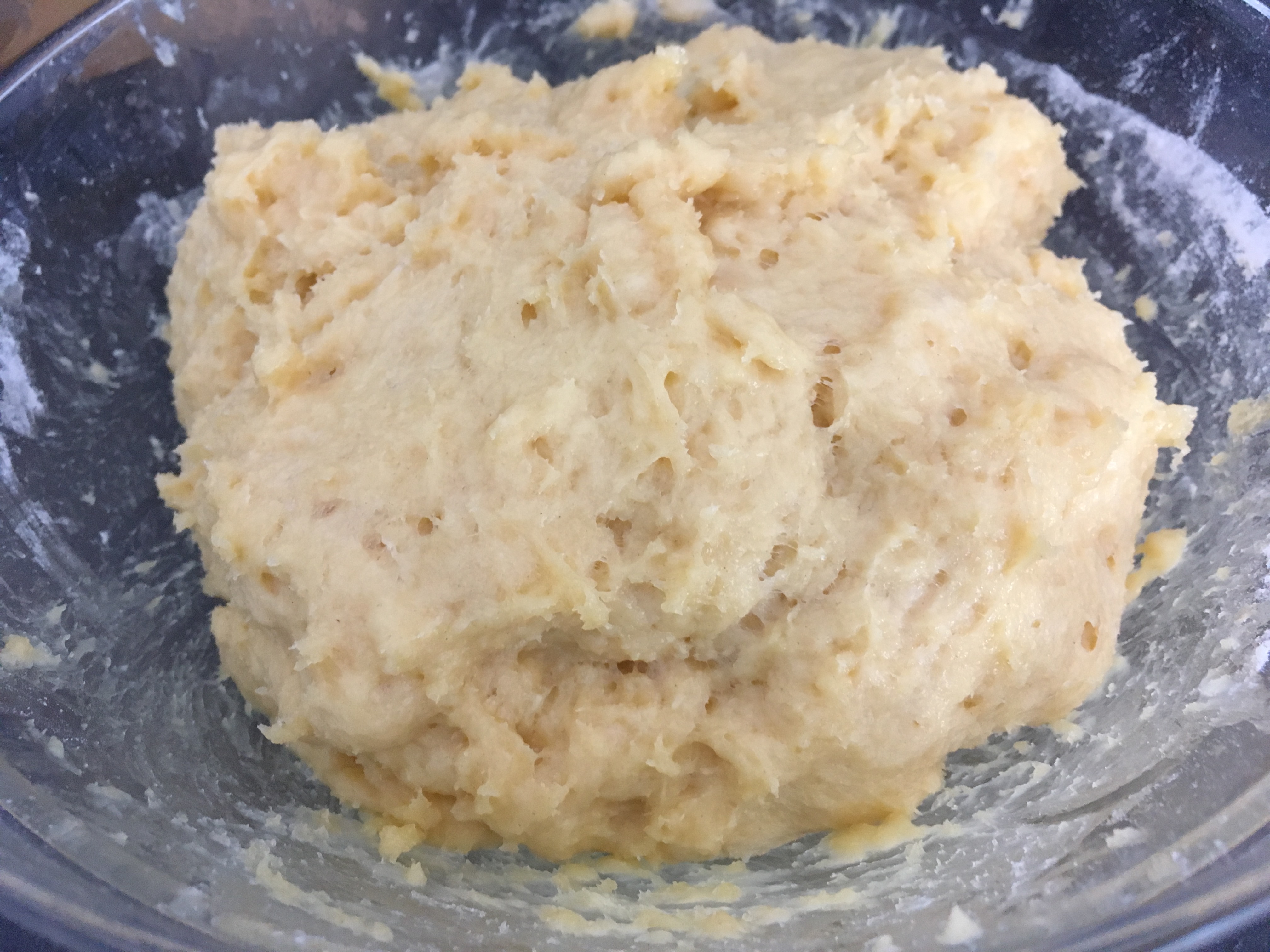 Eier verquierlen Eier zufügen Hefe zufügen - Dann die weiche Butter nach und nach in den Teig einarbeiten.