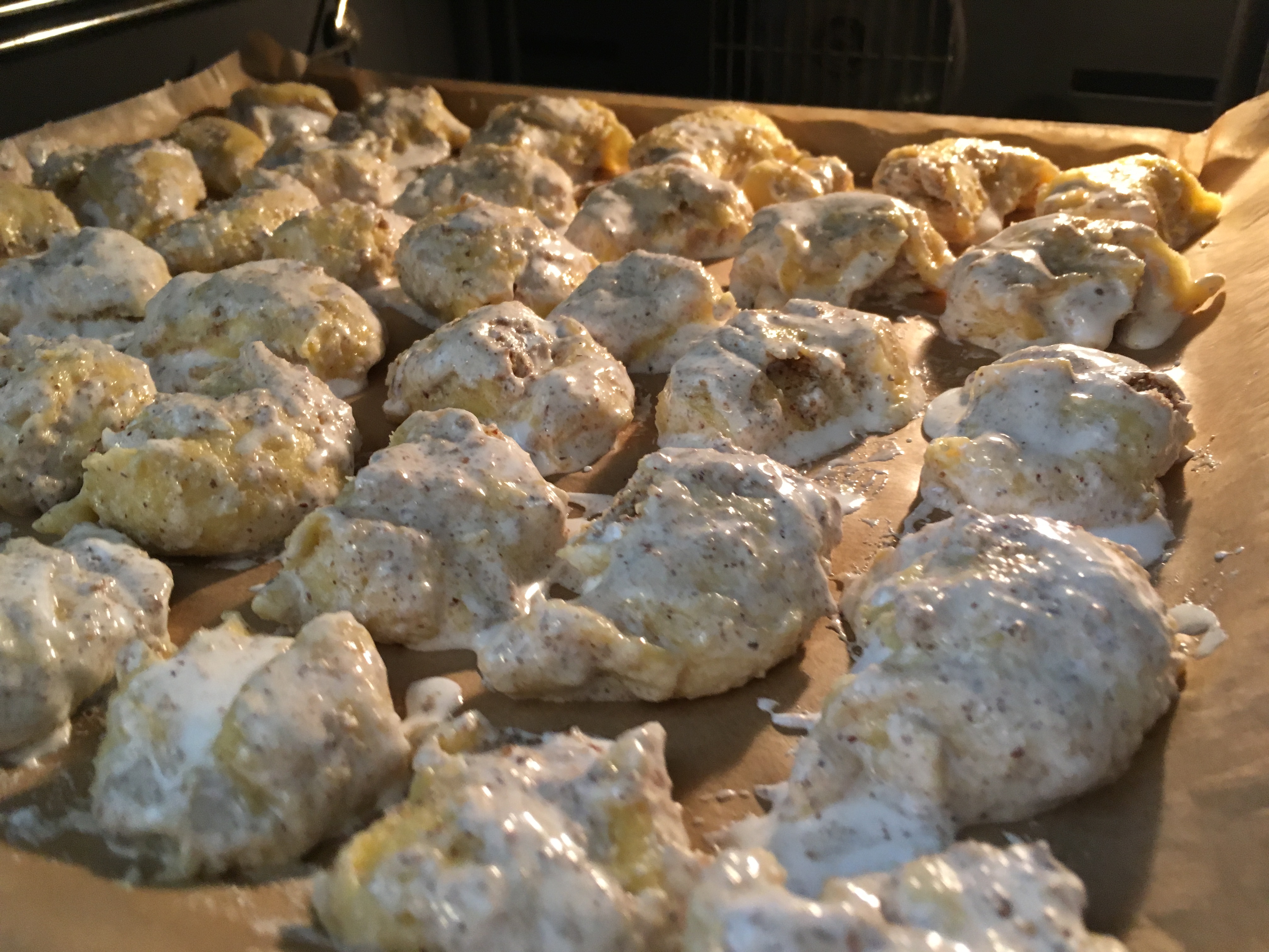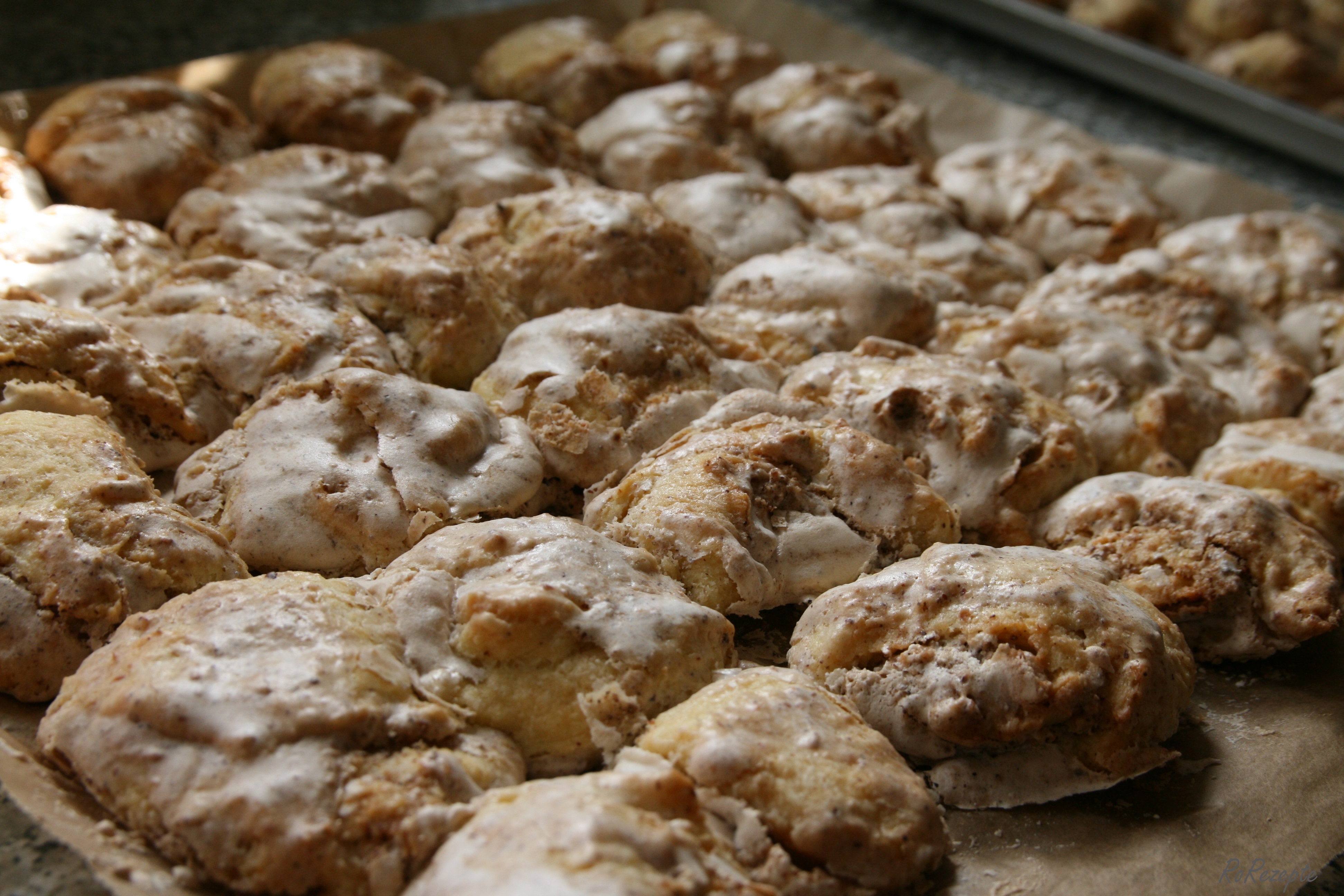 Trockene Zutaten Butter, Ei und Milch zufügen Teigkugel Teighäufchen und Ausrollen Teighäufchen und Ausrollen - Eiklar mit Staubzucker zu Schnee schlagen Wenn man Eiklar und Staubzucker direkt zusammenaufschlagen möchte, wird es kein Schnee (dafür ist der Zucker zu schwer). Es entsteht eher eine Creme. Schlagt erst den Eiklar etwas auf, bis er anfängt Blasen zu schlagen und rieselt anschließend den Zucker rein. Dann erhaltet ihr eine etwas luftigere Creme.
