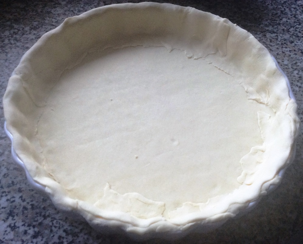 Lauch und Apfelscheiben anbraten - Eine Quiche-oder Springform mit Paniermehl bestreuen und mit Blätterteig auslegen. Ofen auf 175 Grad Umluft vorheizen.
