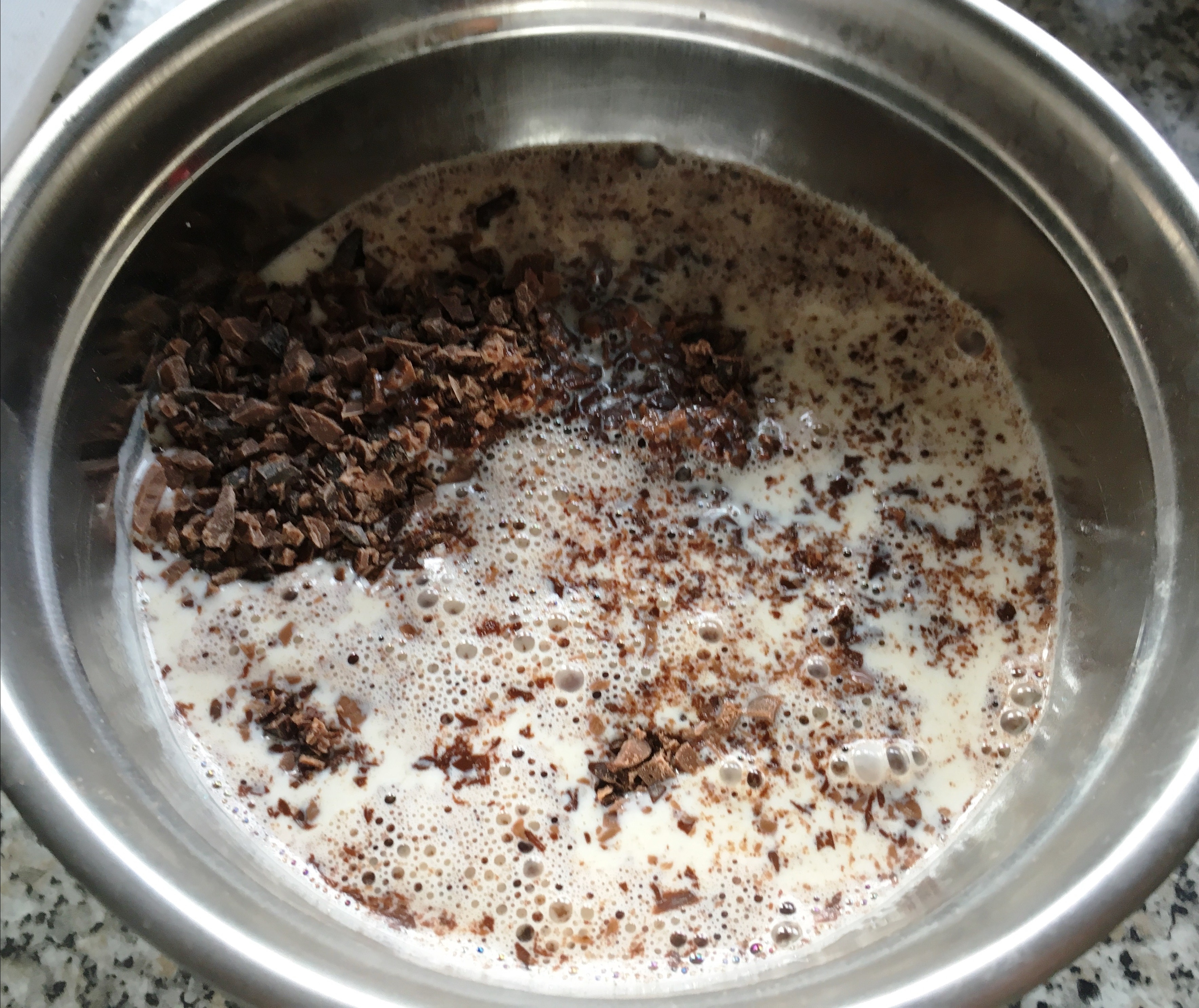 Sahne erhitzen Schokosplitter begießen Ganache abkühlen