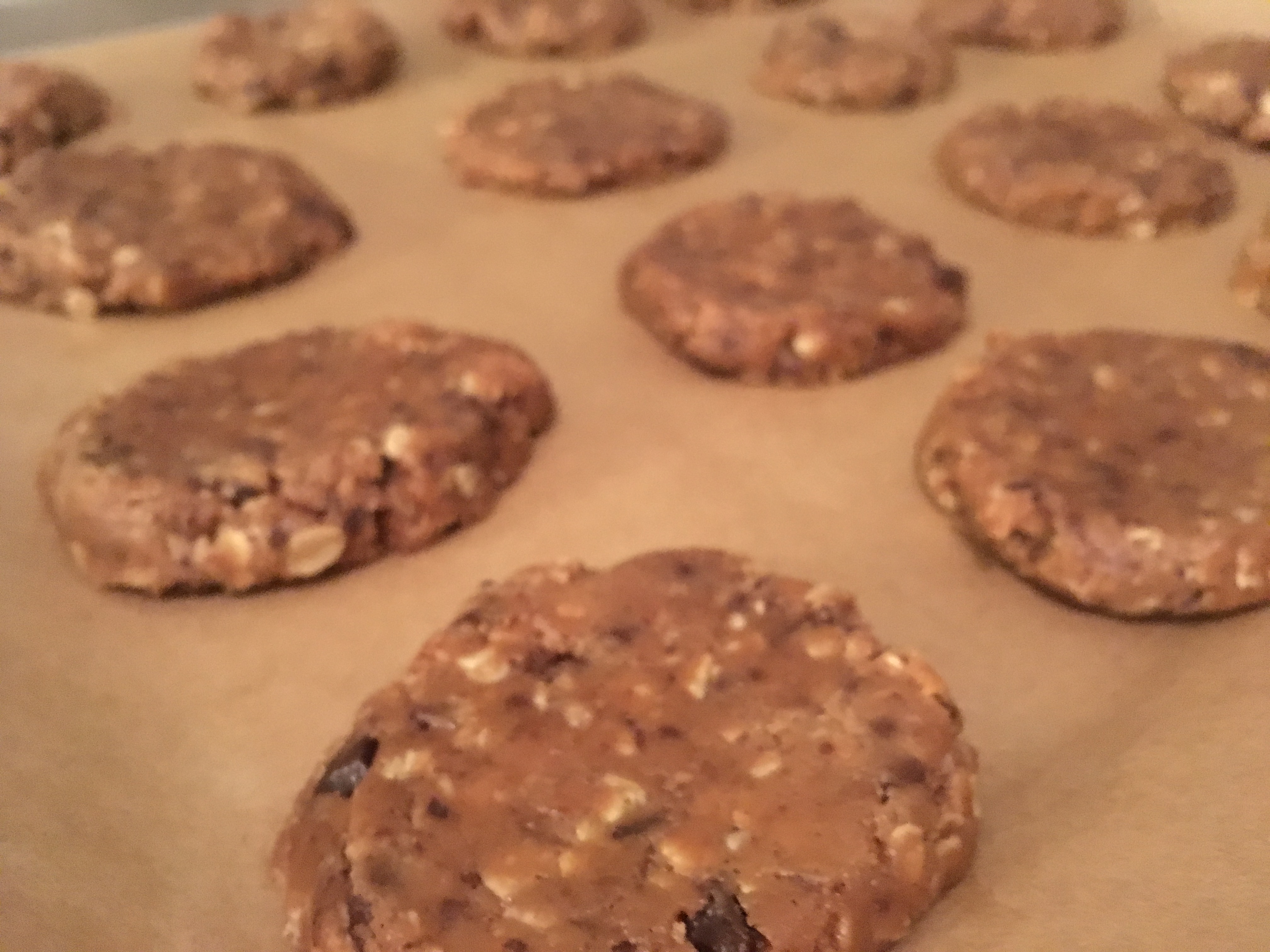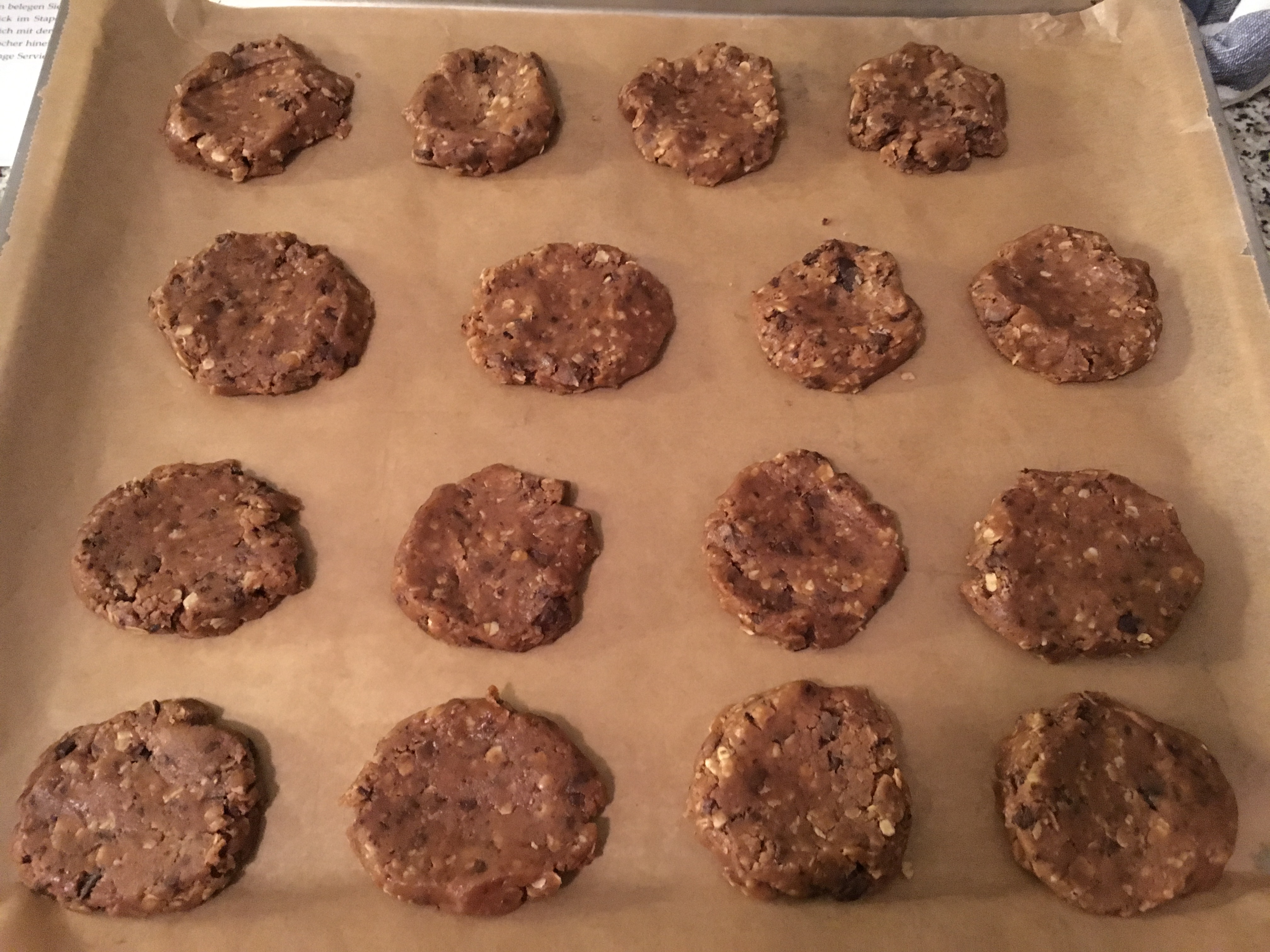 4. Ein Backblech mit Backpapier auslegen, Taler formen und draufsetzen.