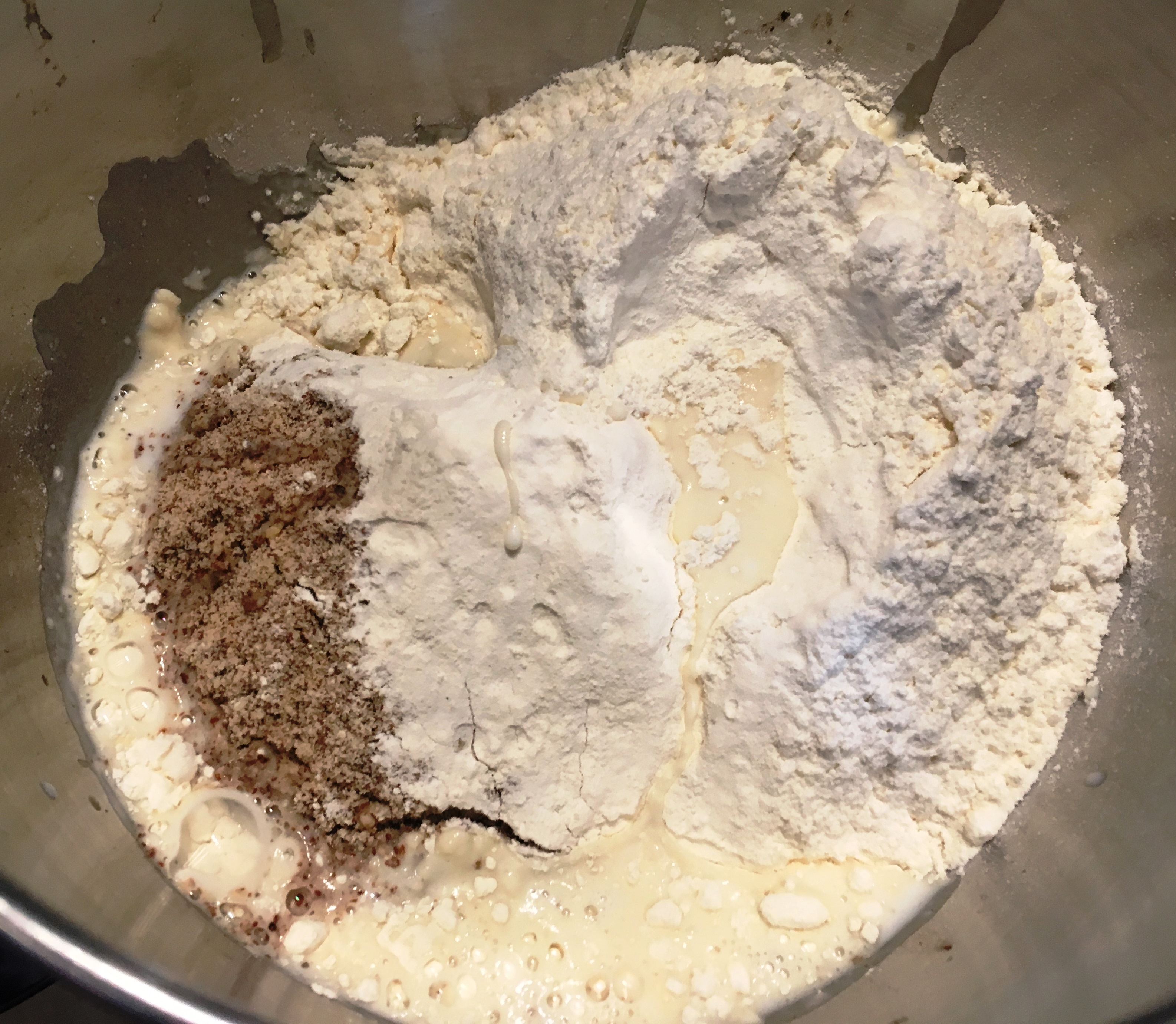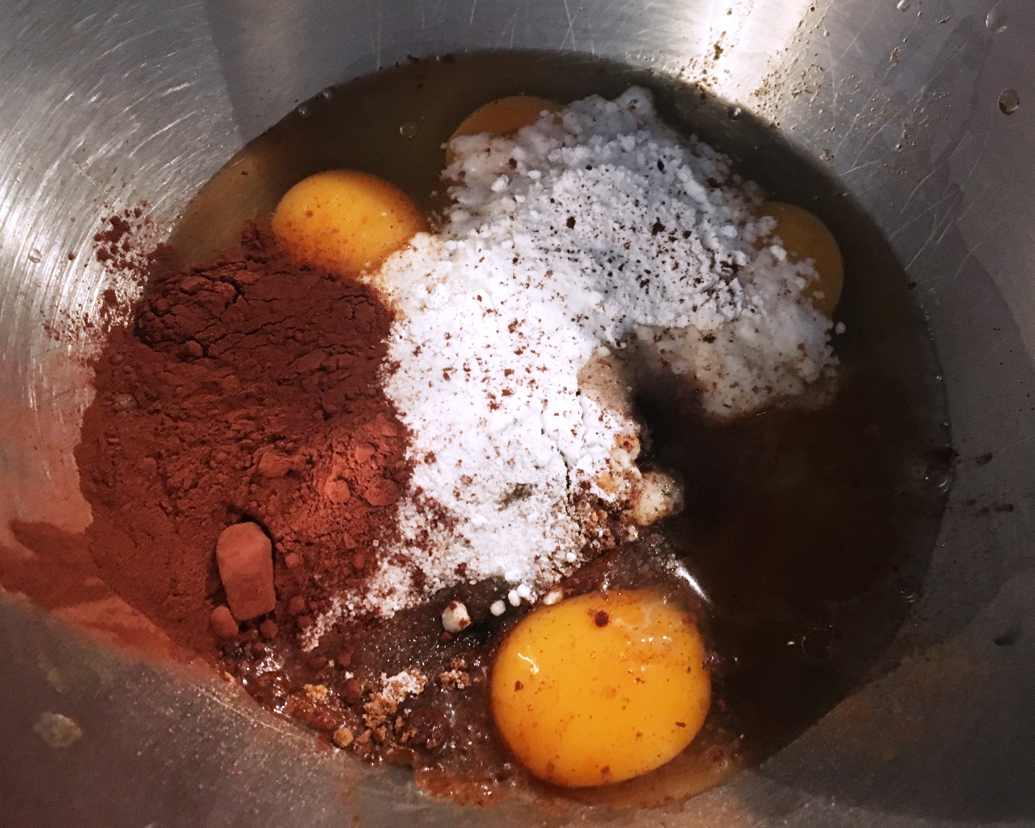 Eier, Kakao, Zucker, Gewürze, Rum, Vanillezucker und Backpulver vermischen Mehl, Milch, gemahlene Mandeln zugeben vermengt geschmolzene Schokolade dazugeben - Teig auf ein mit Backpapier ausgelegtes Backblech streichen und ca. 30-35 Minuten im vorgeheizten Ofen bei 175 Grad backen. Abkühlen lassen und mit geschmolzener Kuvertüre überziehen.