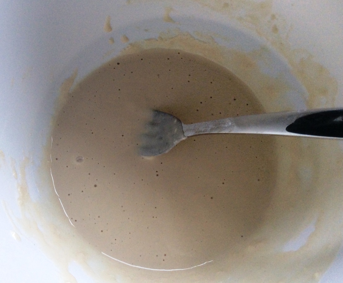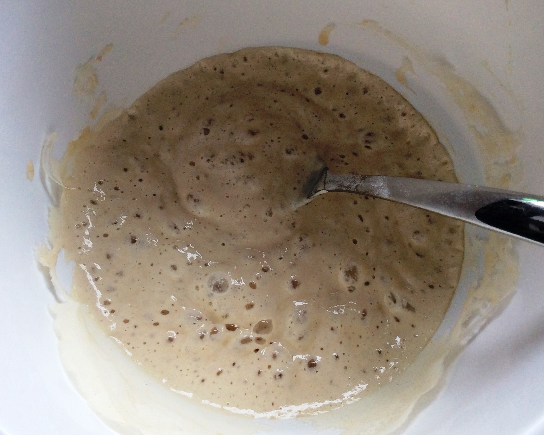 - Die Hefe in der Hälfte des lauwarmen Wassers auflösen und mit 50 g Mehl vermengen. Diesen Vorteig ca. 20 Minuten an einem warmen Ort gehen lassen.