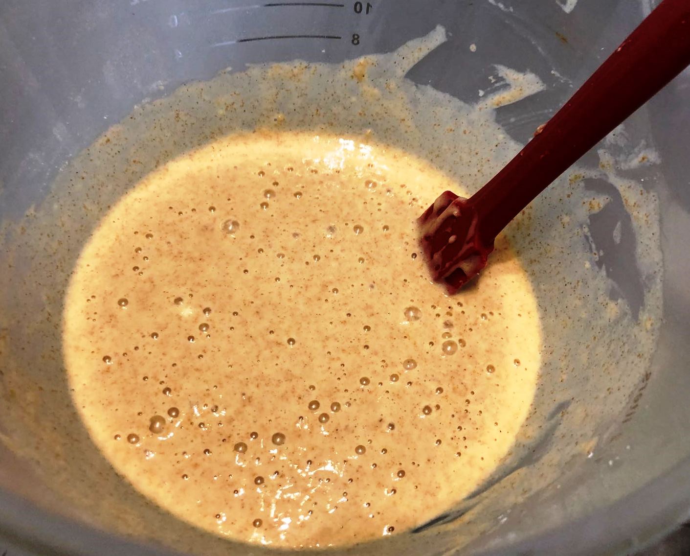 - Zucker, Eier, Fruchtaufstrich bzw. Konfitüre, Milch und Öl schaumig quirlen.