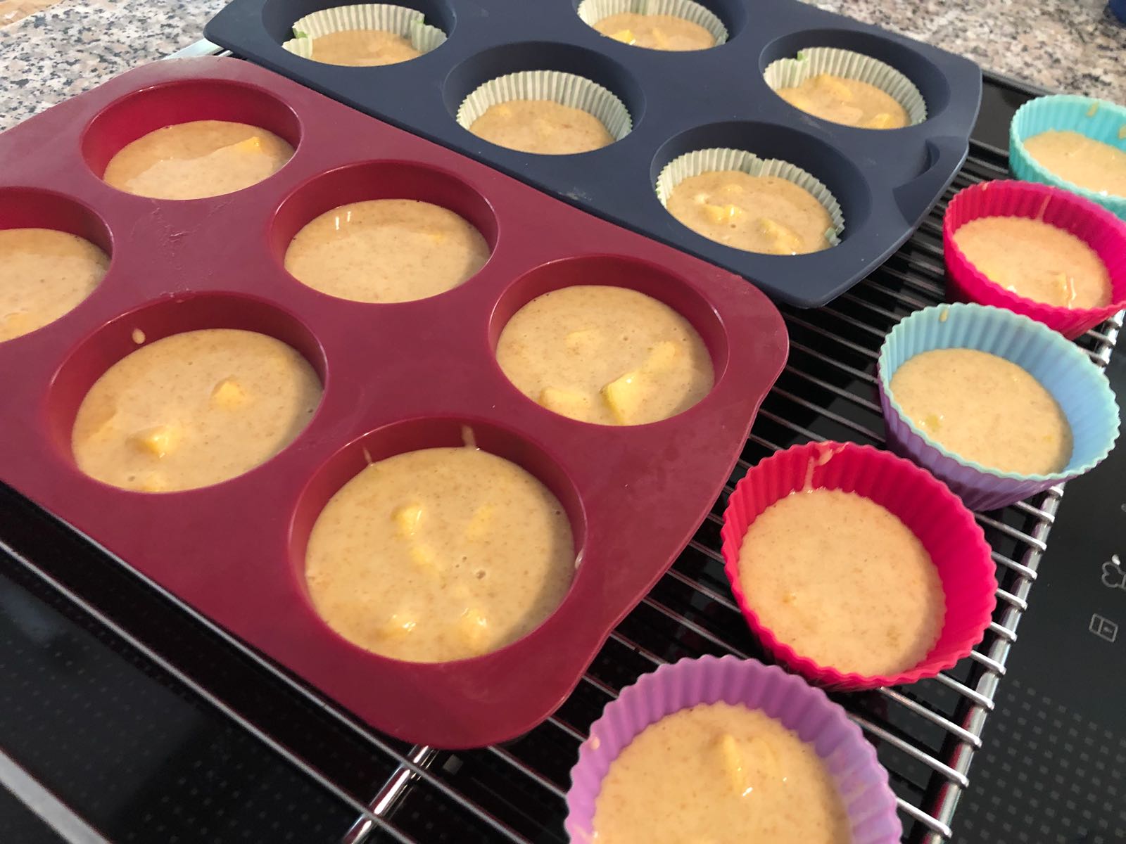 Mango unterheben - Diesen in die Förmchen geben und gut 15 Minuten backen.
