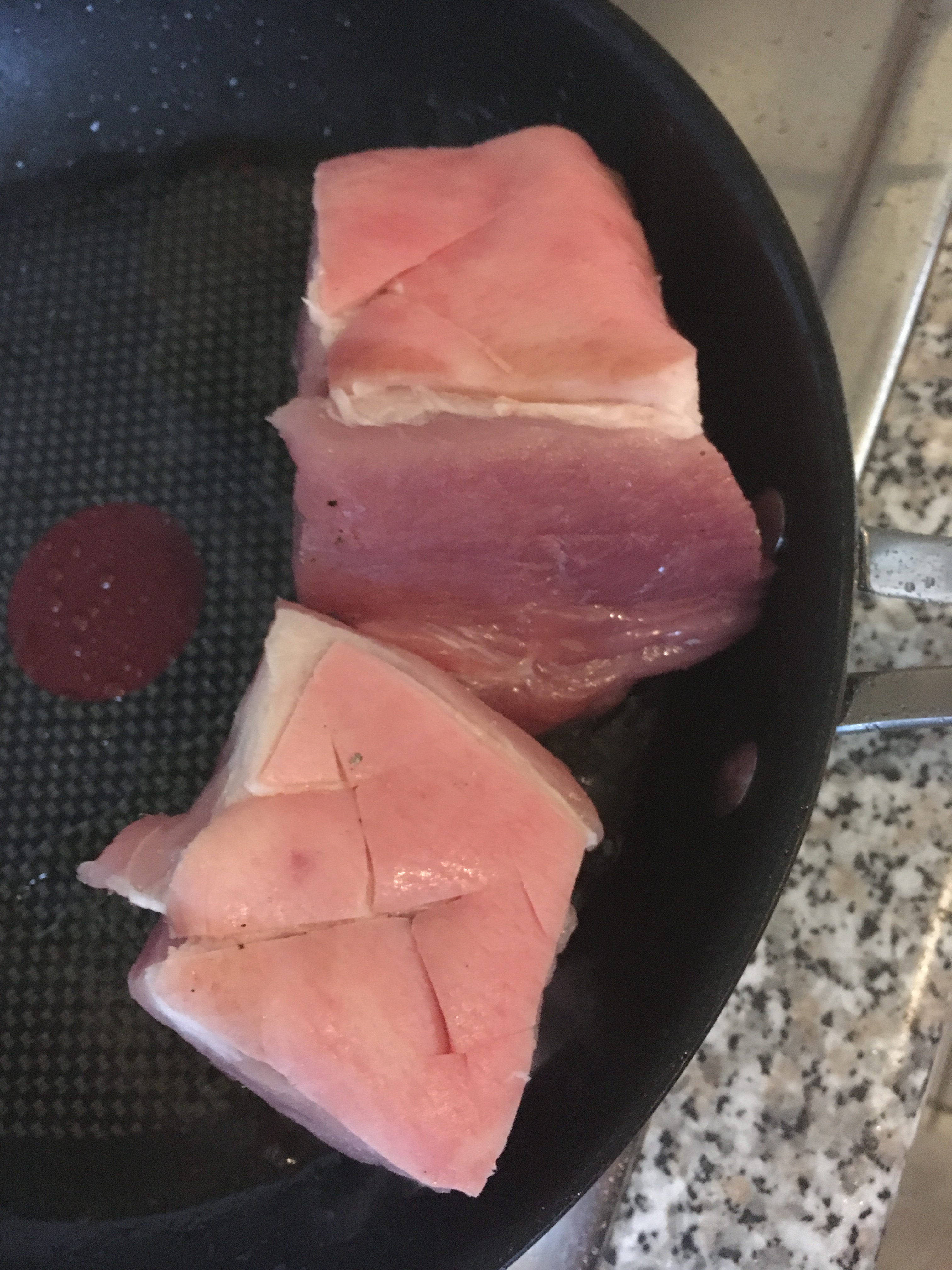 Einfach leckeres Fleisch mit einer schönen krossen Kruste *schwärm* Das Schweiners schmeckt am Besten mit Weißbiersoße und einem Knödel-Gugelhupf (das Rezept hierfür bekommt ihr natürlich auch noch :)).