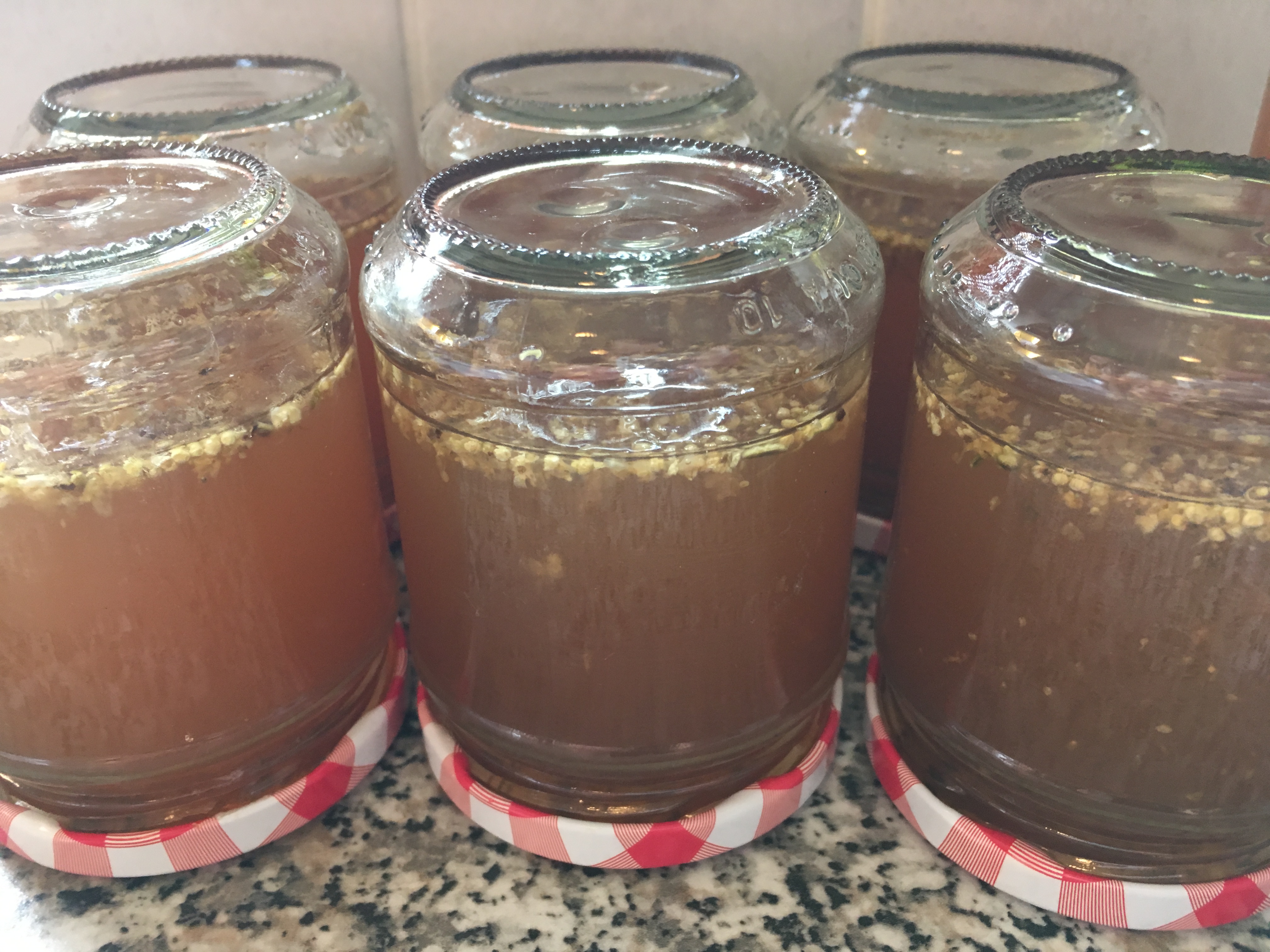 6. In die vorbereiteten Gläser geben, gut verschließen und für 3 Minuten auf den Kopf stellen. Plant hier am besten etwas mehr Zeit ein. Bei mir hat es deutlich länger als 3 Minuten gedauert. 10 Minuten?
