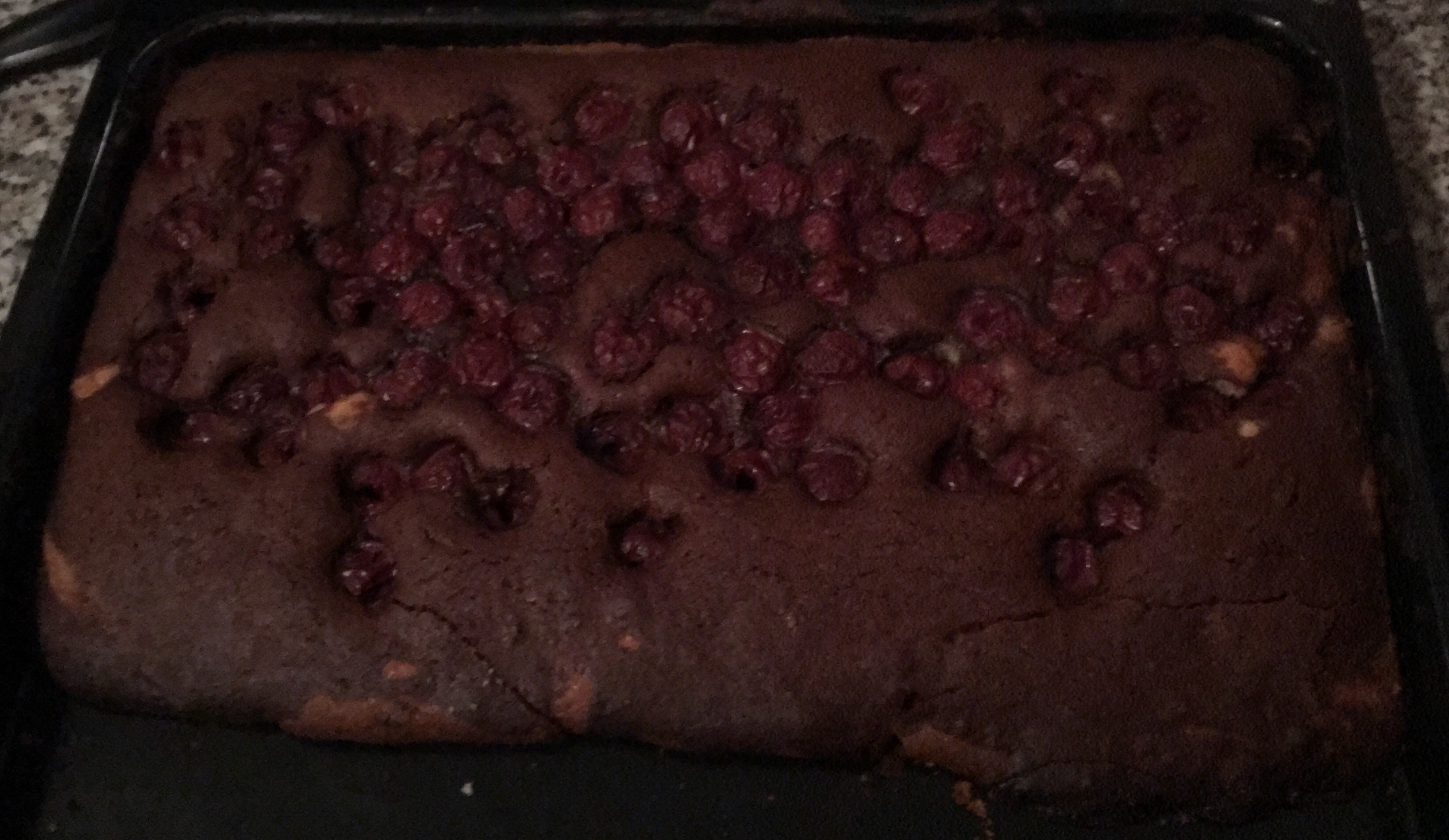 Ich muss ehrlich sagen, dass ich nach dem Backen ein wenig frustriert war. Irgendwie sah er nicht so aus, wie ich es mir vorgestellt hatte.. und dann war er an einer Stelle auch härter als geplant. Da ich nach Anleitung auch ein ganzes Backblech genutzt hatte, reichte der Teig nicht und zerlief auch beim Backen. Wer also ein ganzes Backblech backen möchte, sollte die angegebenen Mengen im Rezept verdoppeln. Sonst sollte alternativ eine normale Springform genutzt werden.