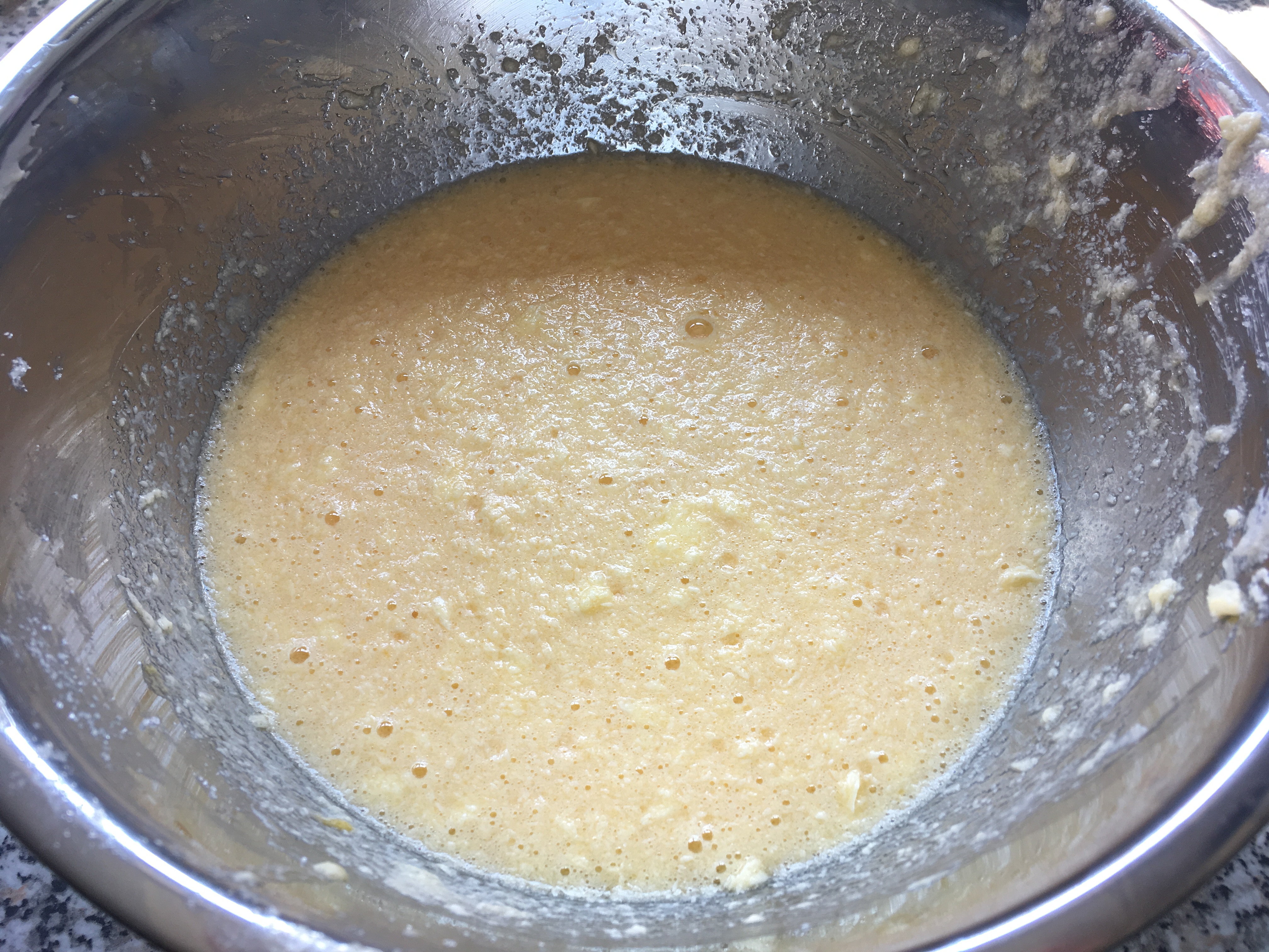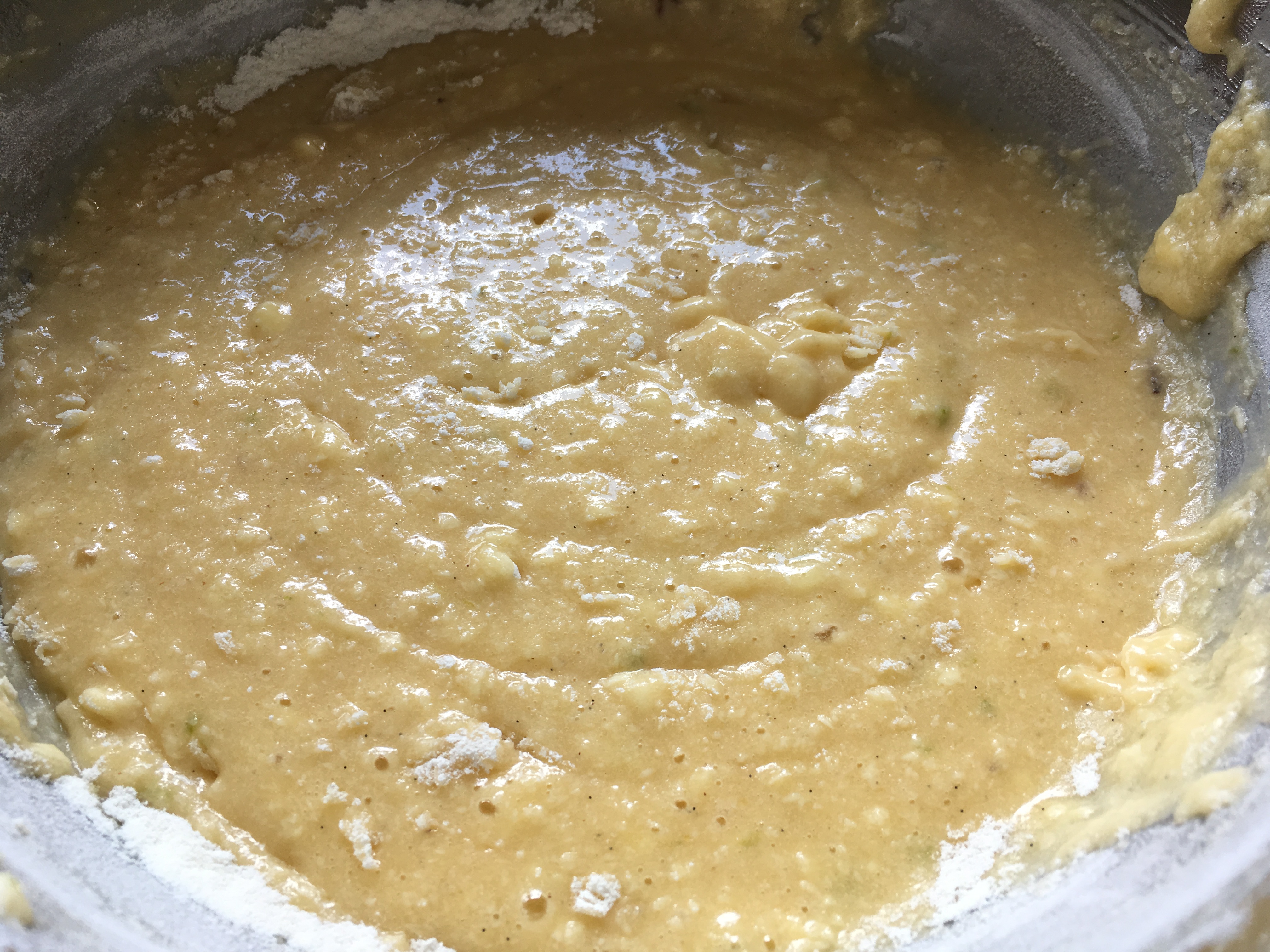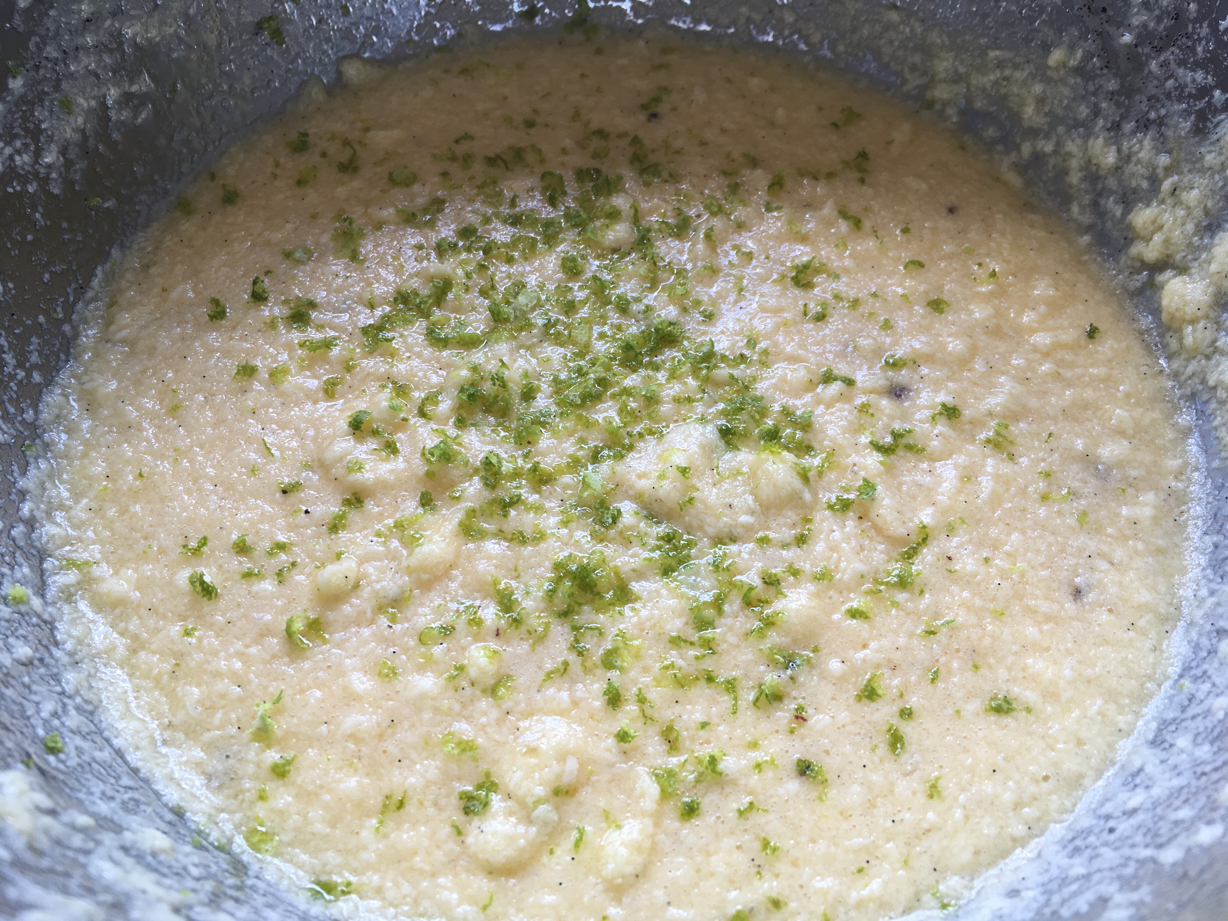 Mandellikör Limonenabrieb - Nun das Mehl langsam unterrühren.