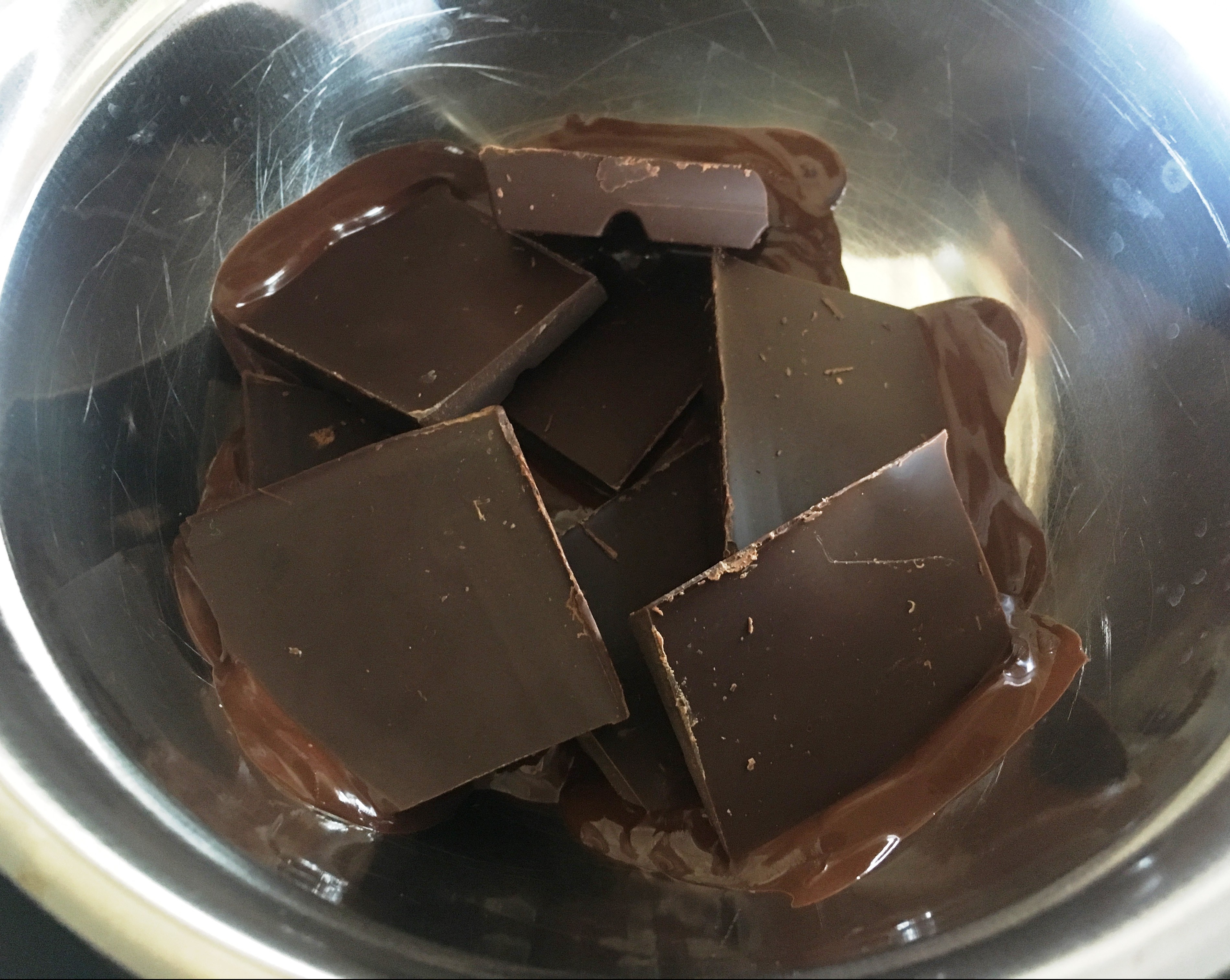 - 200g Zartbitterkuvertüre (65%) schmelzen.