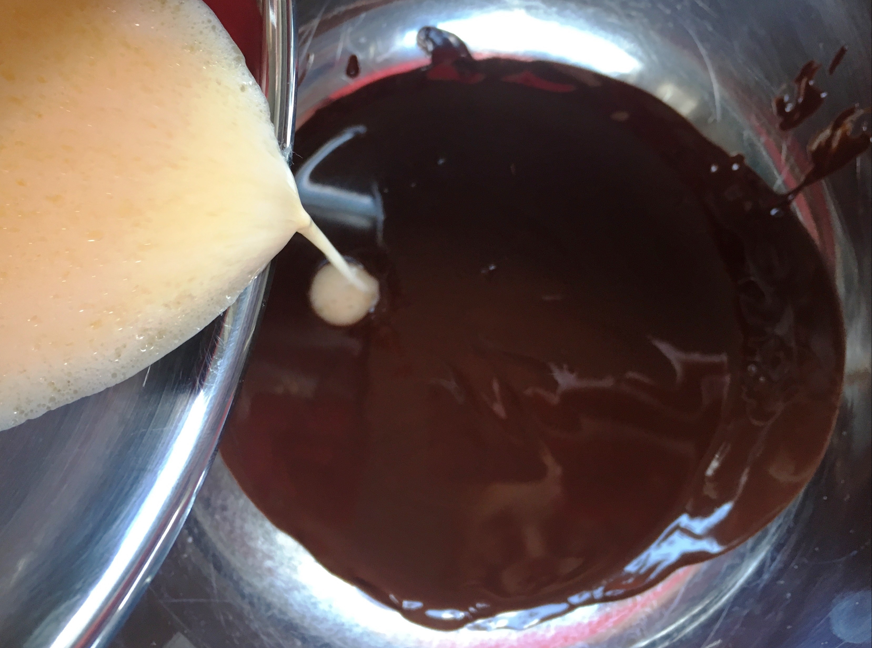 Mischung portionsweise untermengen Mischung portionsweise untermengen über Wasserbad vermengen Kühlen und mischen - 50g kandierte Rosenblüten im Mixer fein mahlen,