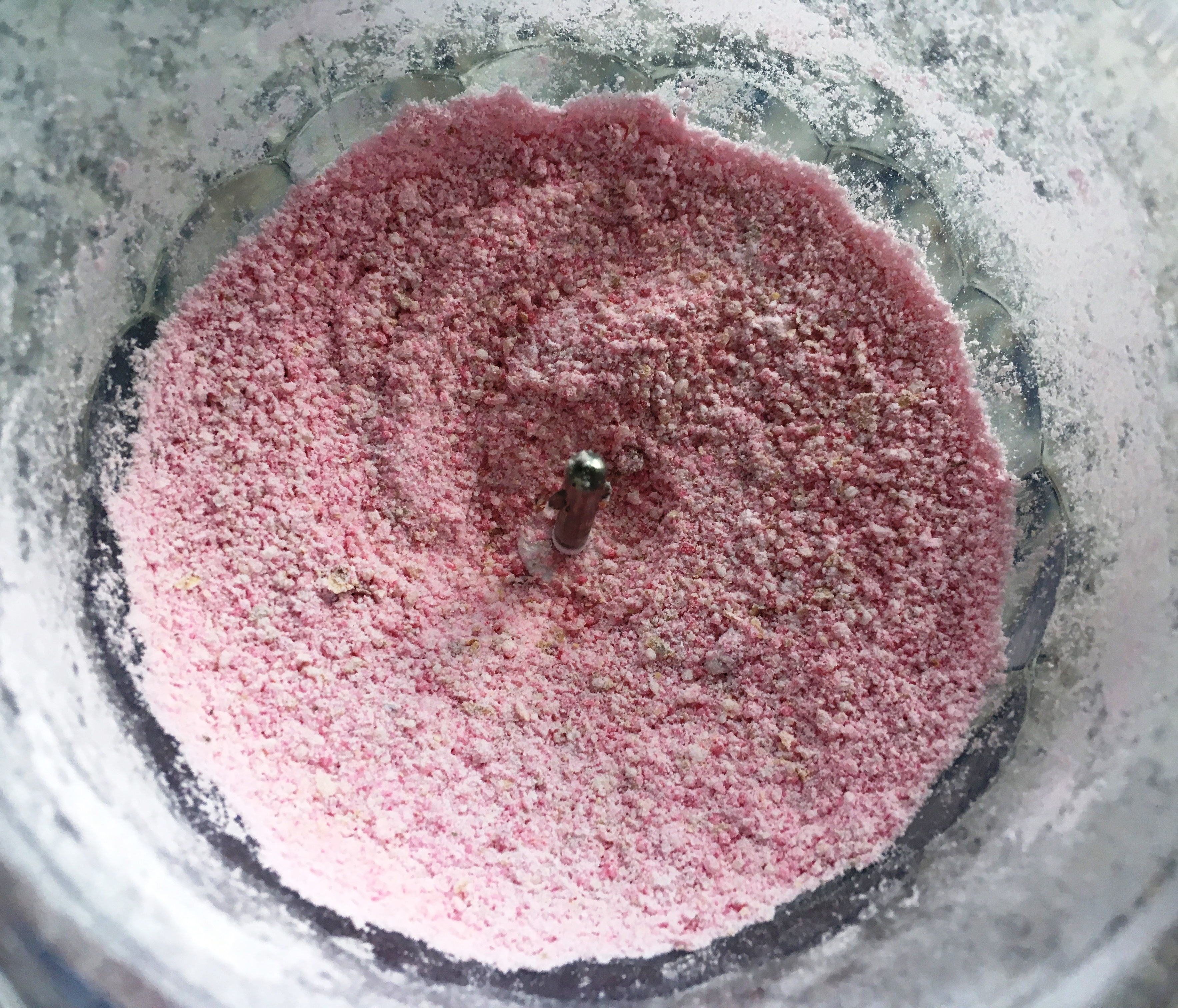 kandierte Rosenblüten zerkleinern zerkleinert - mit 200g Zucker vermischen