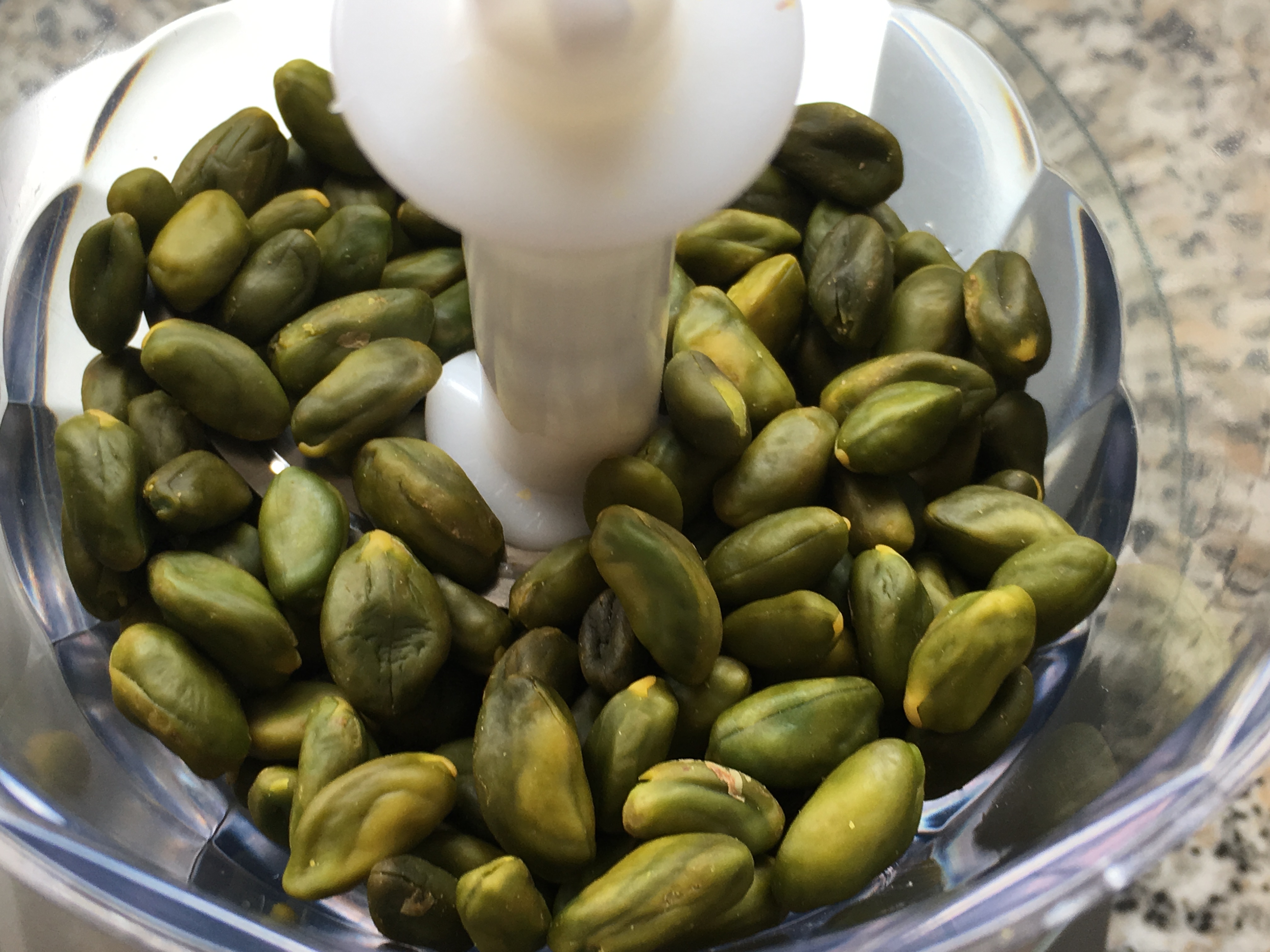 - 80g Pistazien (bereits gemahlen) als geschält gekauft