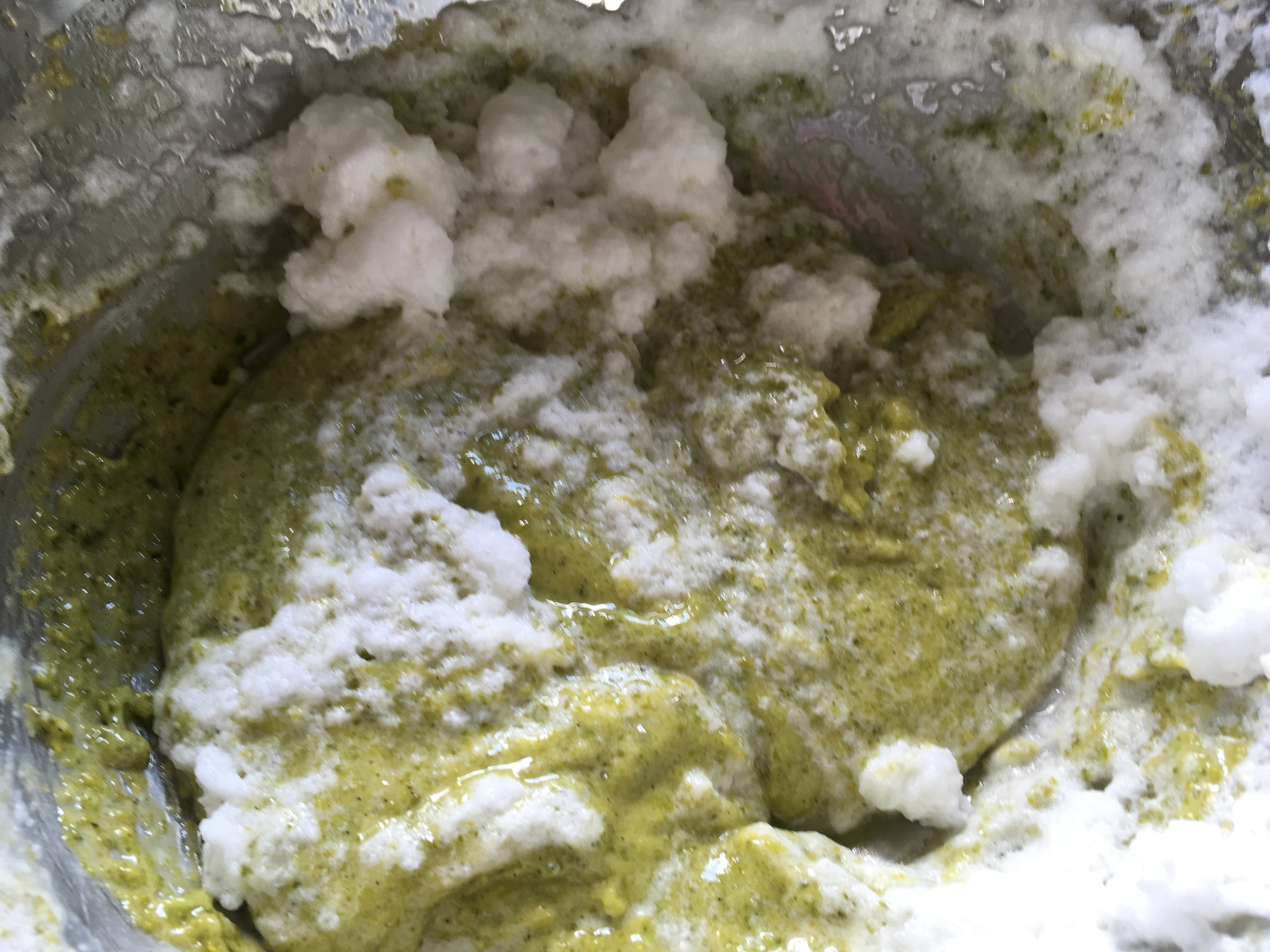 EiweiĂź schlagen Geschlagenes EiweiĂź - Die geschmolzene KuvertĂĽre vermische ich mit dem geschlagenen Eigelbcreme und hebe die Pistazien unter.
