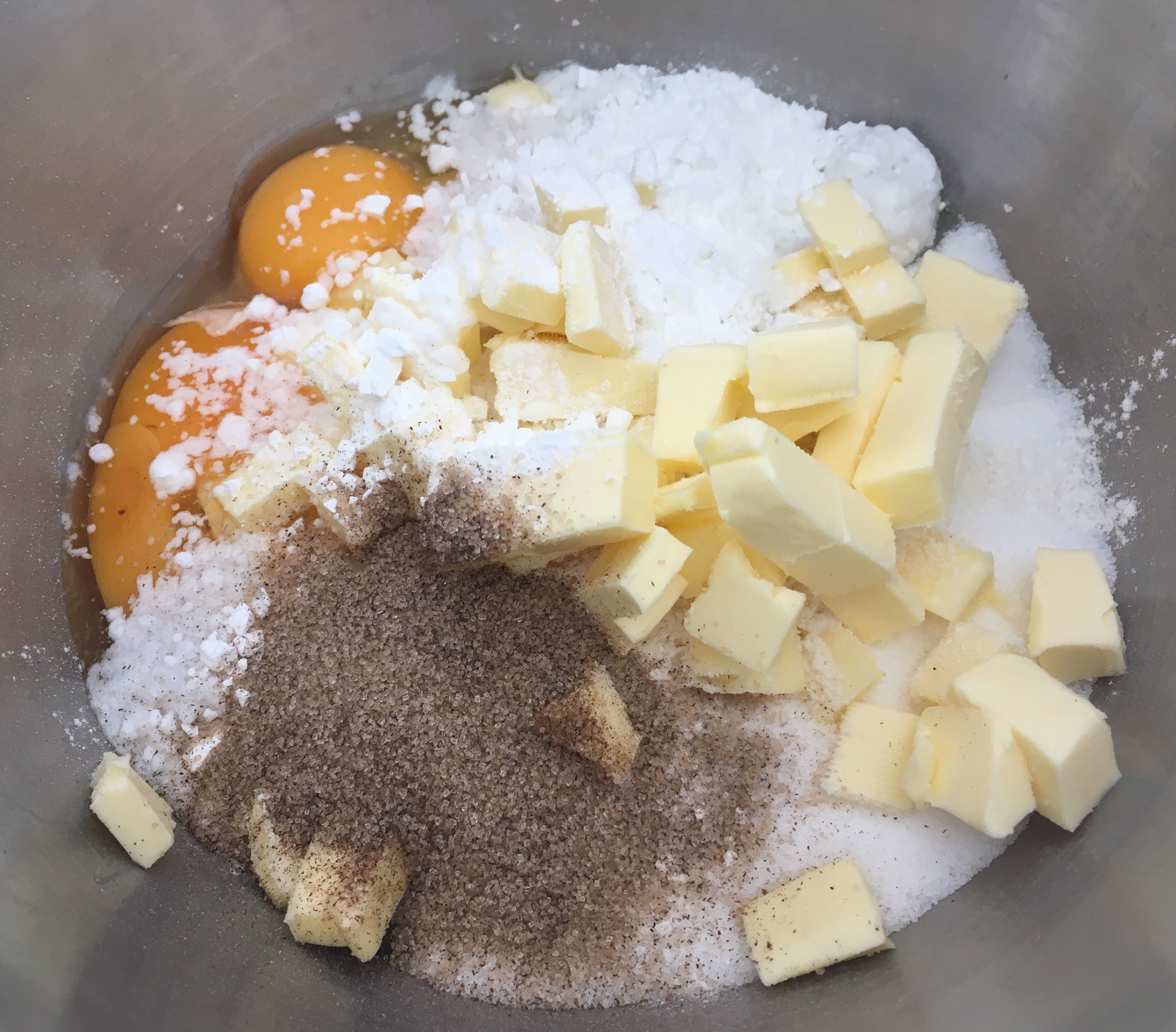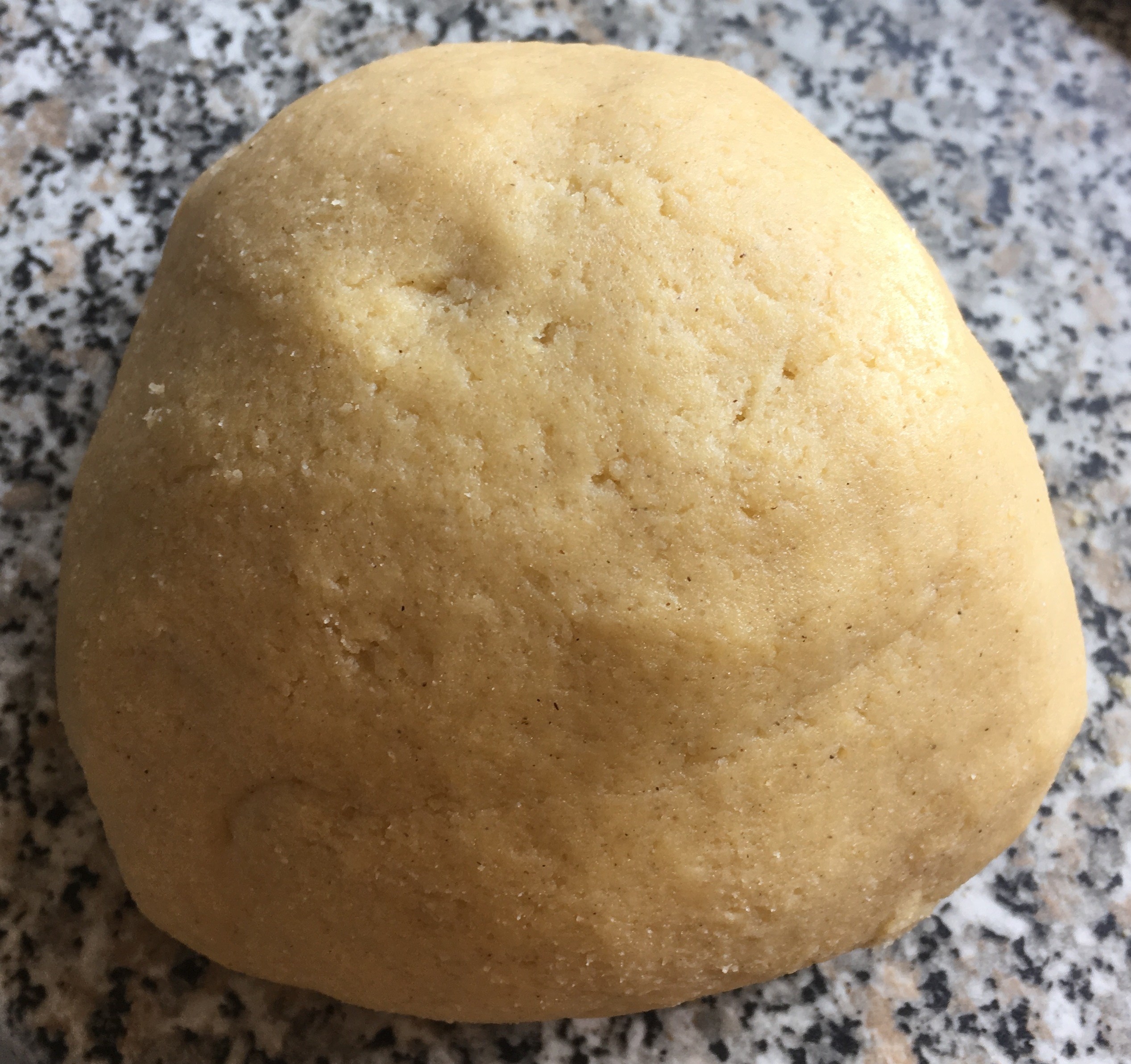 - Alle Zutaten für den Teig verkneten. Die Teigkugel in Klarsichtfolie wickeln und für 30 Minuten in den Kühlschrank legen.