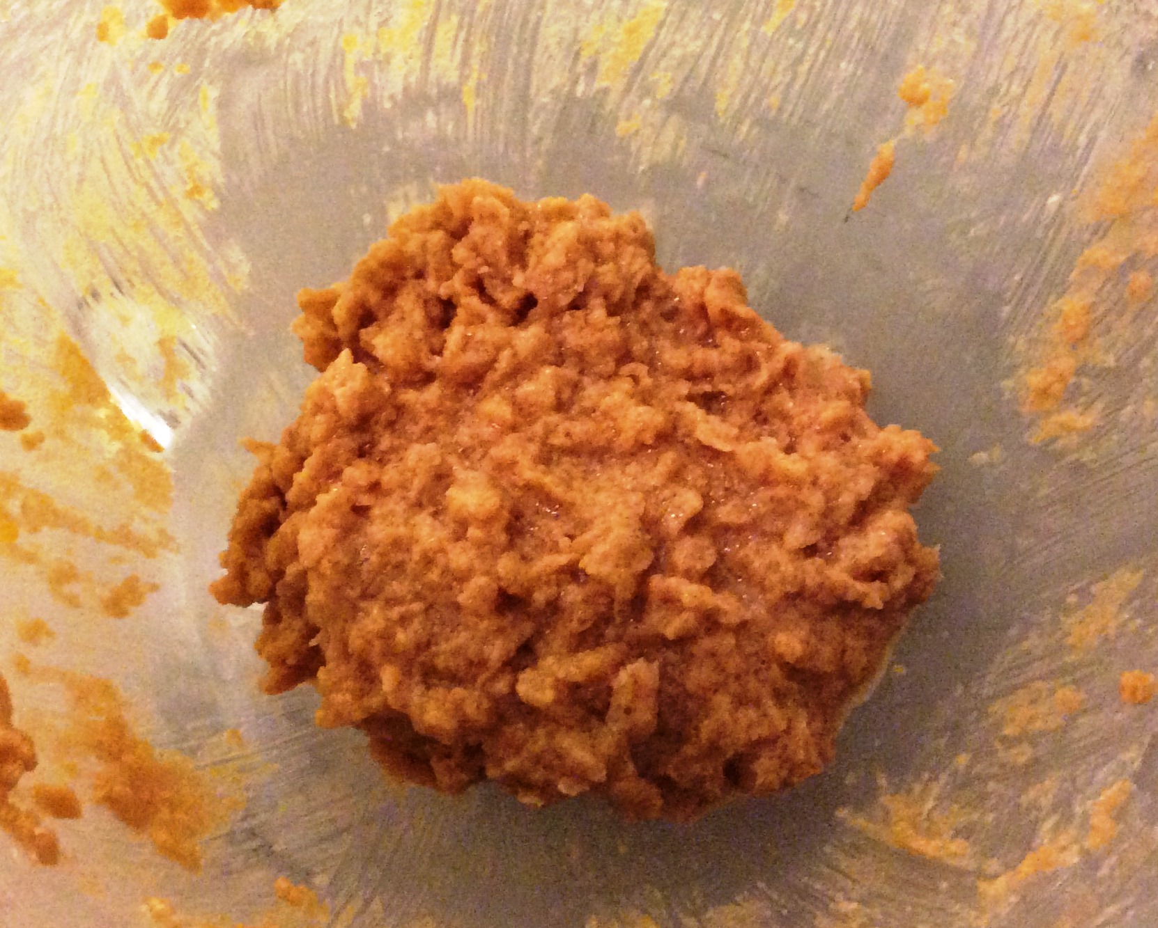 Butter und Zucker vermengen vermengen mit Ei vermengt Wenn es sich mit den anderen Zutaten verbunden hat, Mehl und Backpulver darübersieben und unterheben, bis ein weicher Teig entstanden ist.