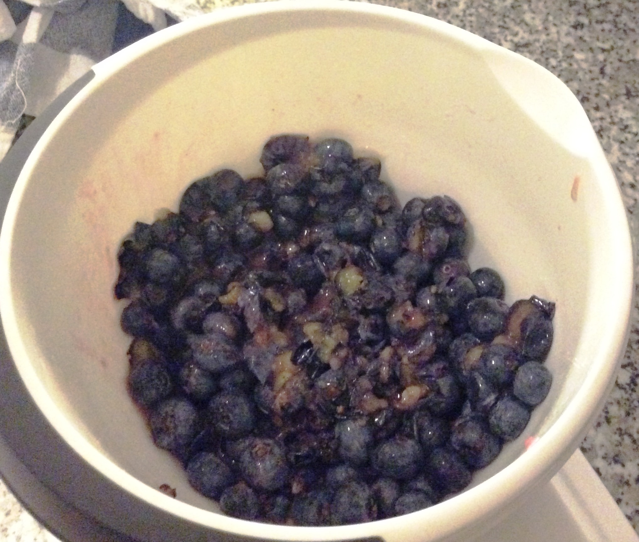 - Mein Tipp, erst als Schritt Nr. 3: Die Blaubeeren in eine Schüssel geben und mit dem Zitronensaft beträufeln. Die Früchte teilweise mit dem Kartoffelstampfer zerdrücken, den Großteil jedoch ganz lassen. Die Beeren mit den Händen vermischen und beiseitestellen.