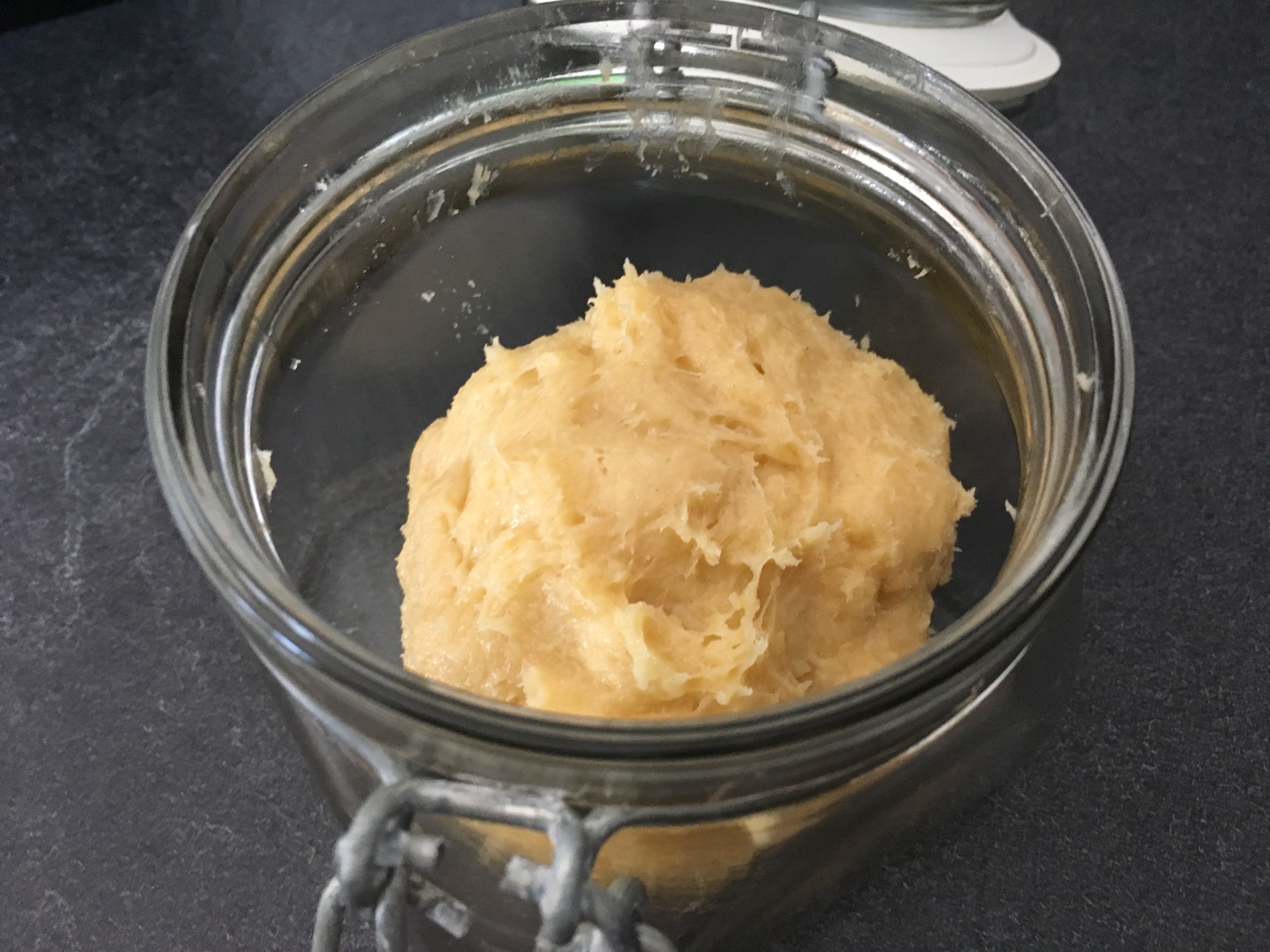 Abgedeckt kühlen - Am nächsten Tag den Teig aus dem Kühlschrank nehmen und mindestens 2 Stunden bei Zimmertemperatur gehen lassen.