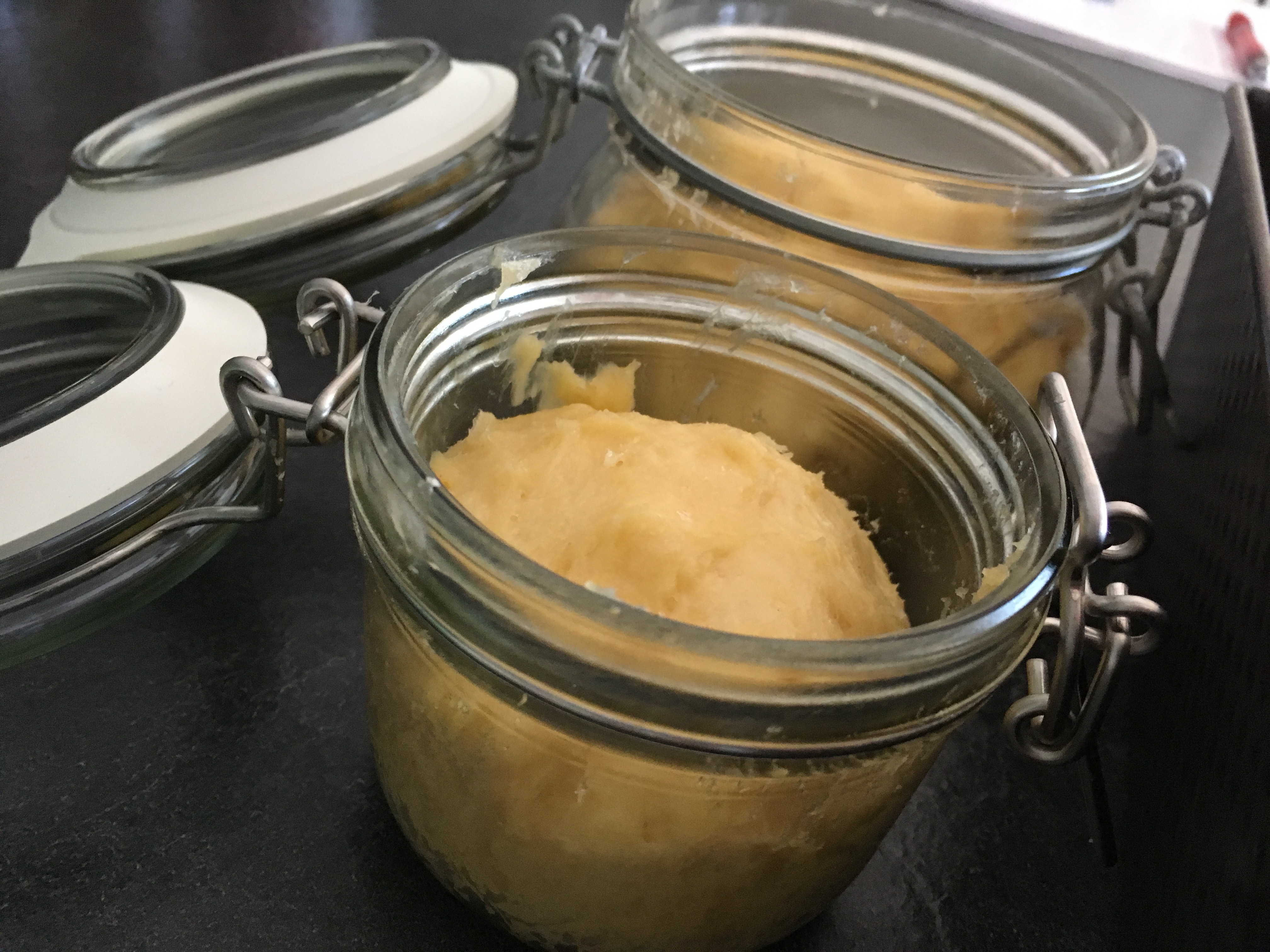 Gehen lassen - 3 Weckgläser gut buttern und den Teig gleichmäßig auf die Gläser verteilen.