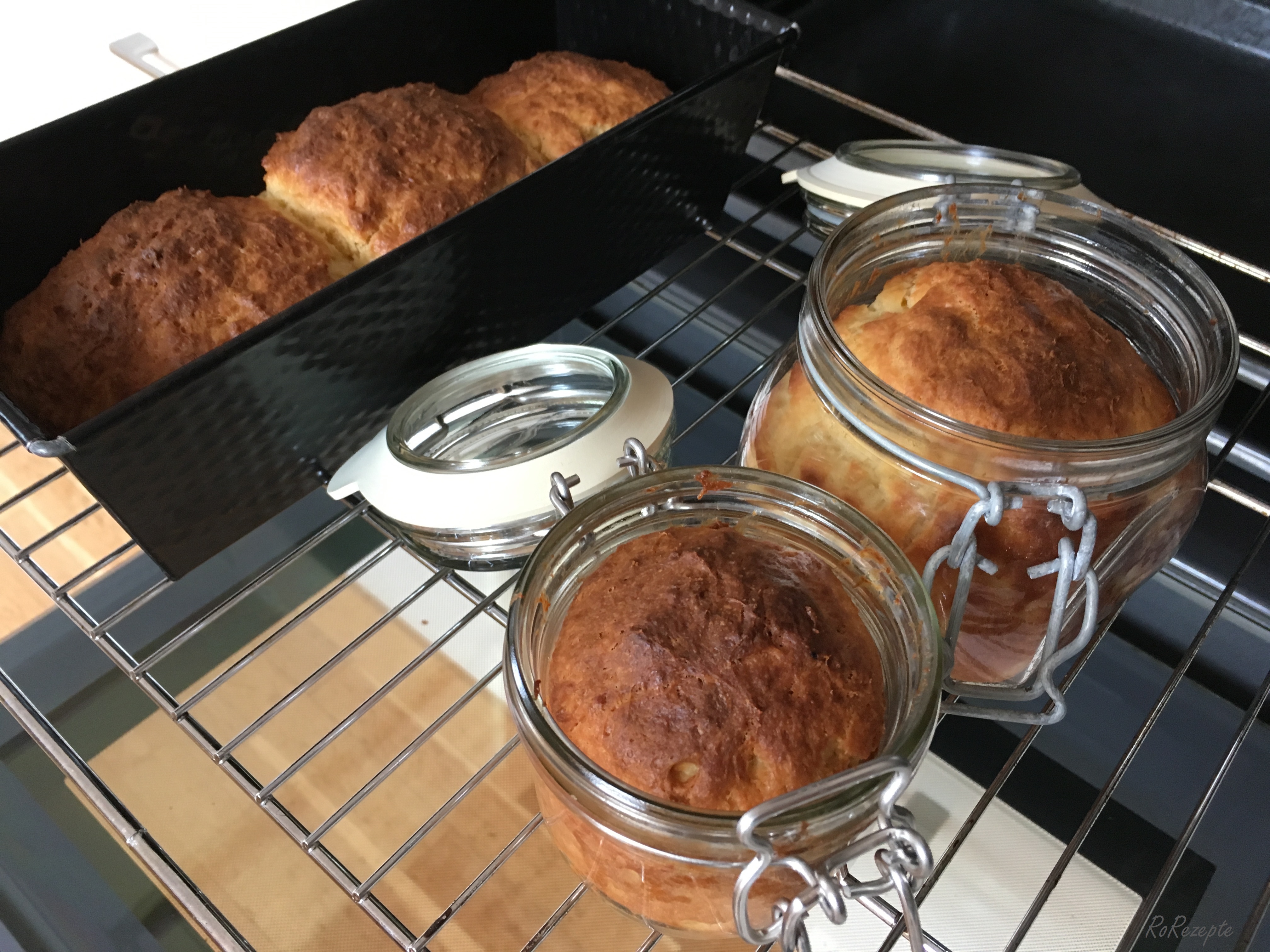 Gehen lassen Gehen lassen - Dann 30 Minuten bei 180 Grad Ober- und Unterhitze oder bei 160 Grad Umluft backen. Etwas auskühlen lassen, dann lösen sich die Brioches besser aus den Gläsern.