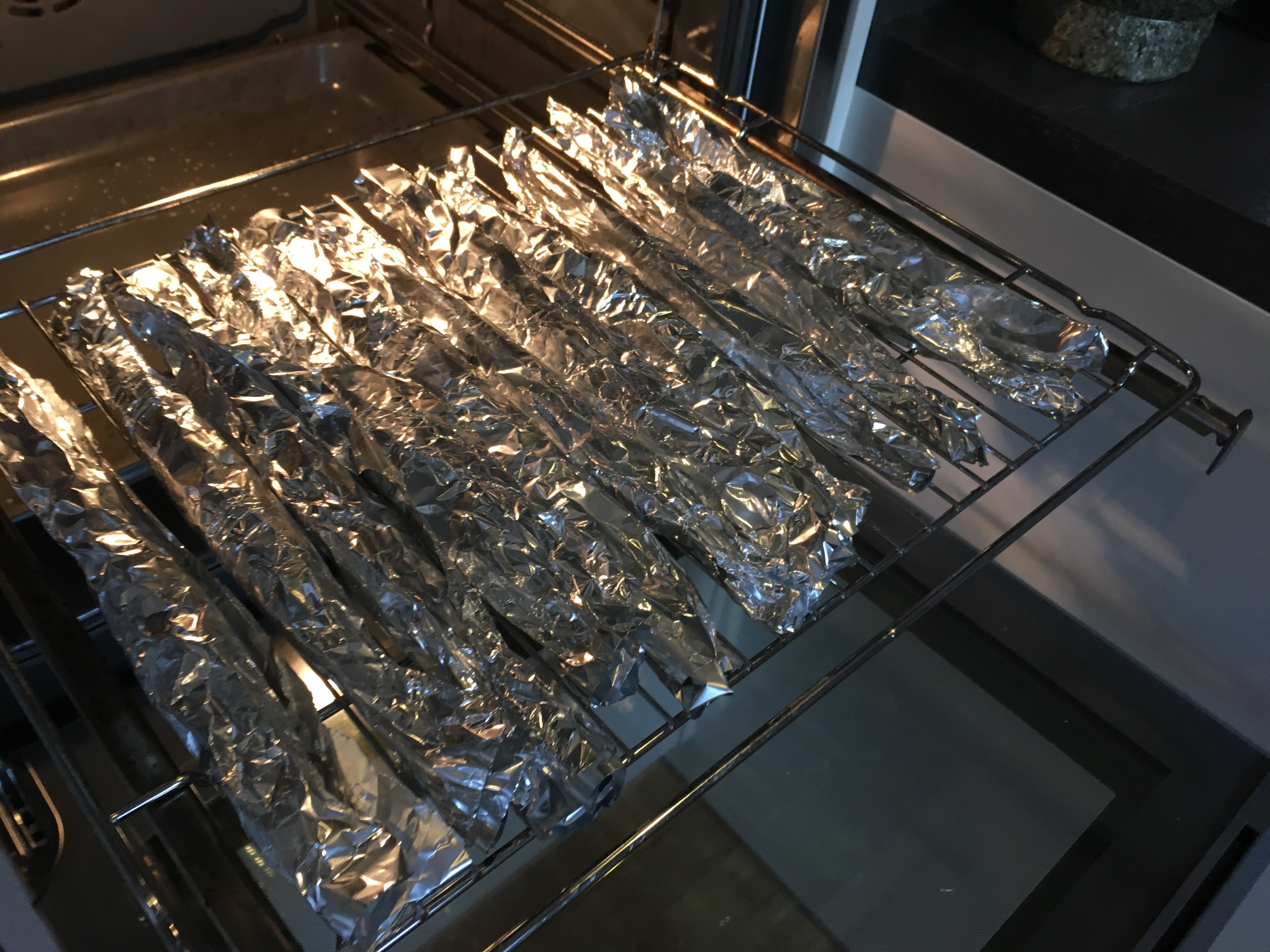 Würste rollen Würste rollen - Die Würste wickeln Sie nun fest in Alufolie, dann werden sie im Ofen bei 150°C 50 Minuten lang gebacken. Am Ende der Backzeit schalten Sie den Ofen aus und lassen die Würste noch ein paar Minuten darin ruhen. Anschließend aus dem Ofen nehmen und sofort auswickeln.