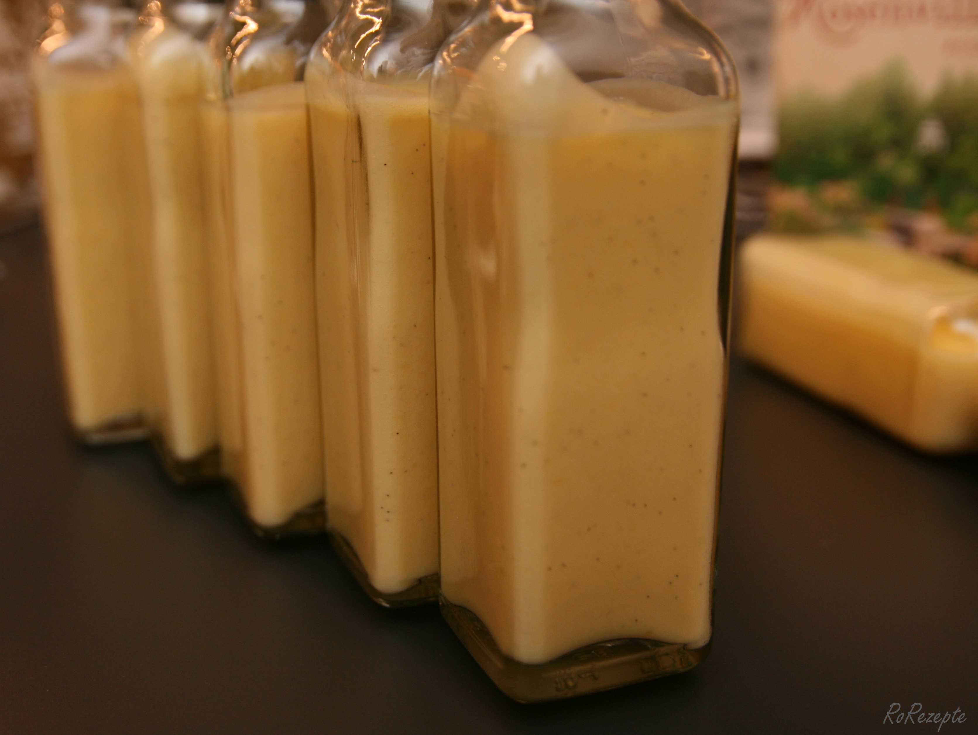 Trotz meiner kleinen Schwachstellen in der Umsetzung, schmeckt der Eierlikör nach Eierlikör, sieht und läuft genauso wie ein gekaufter Eierlikör 🙂 Lasst es euch schmecken!