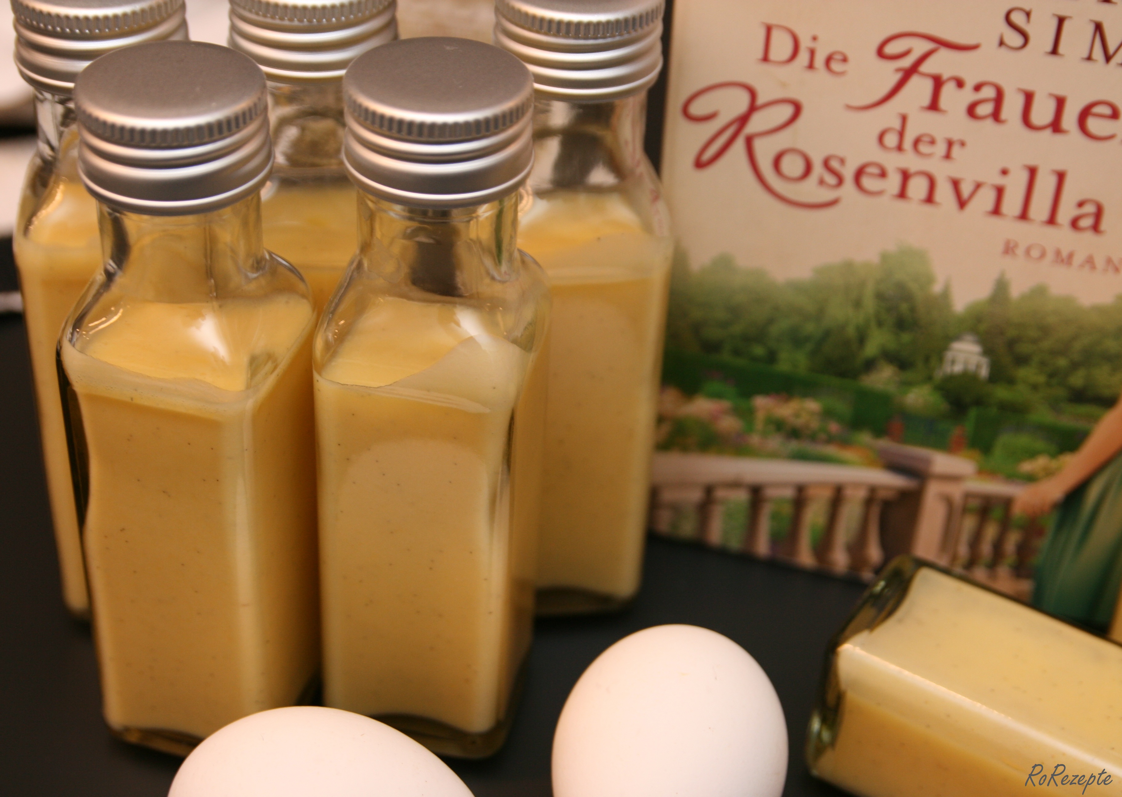 In Die Frauen der Rosenvilla hat Teresa Simon hier ein super Grundrezept für einen Eierlikör angehangen. Abgefüllt in kleine Flasche eine super Geschenkidee zu Ostern!