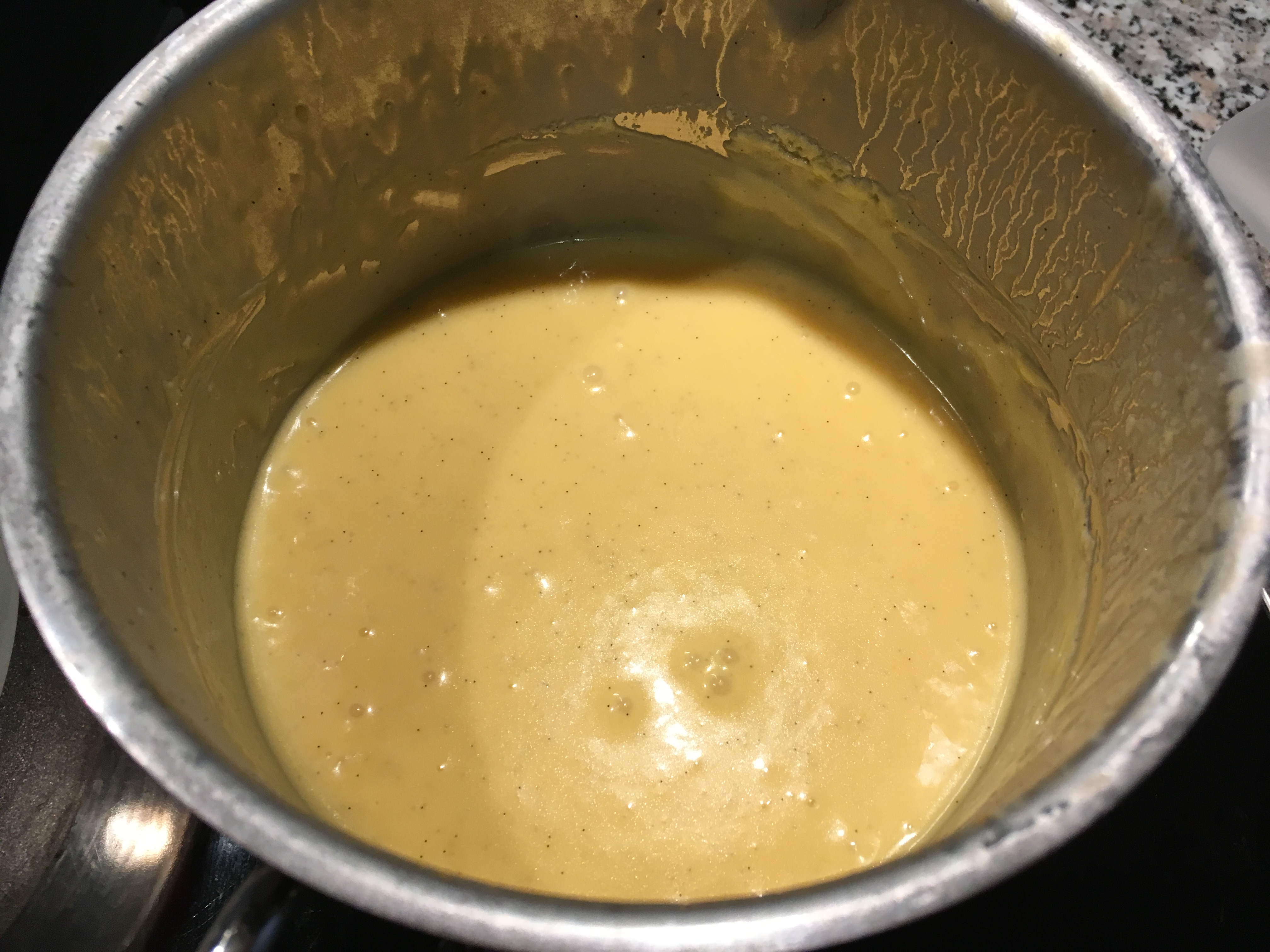 Flüssigkeiten Flüssigkeiten zugeben - und über einem Wasserbad cremig rühren (dauert circa 5-6 Minuten).