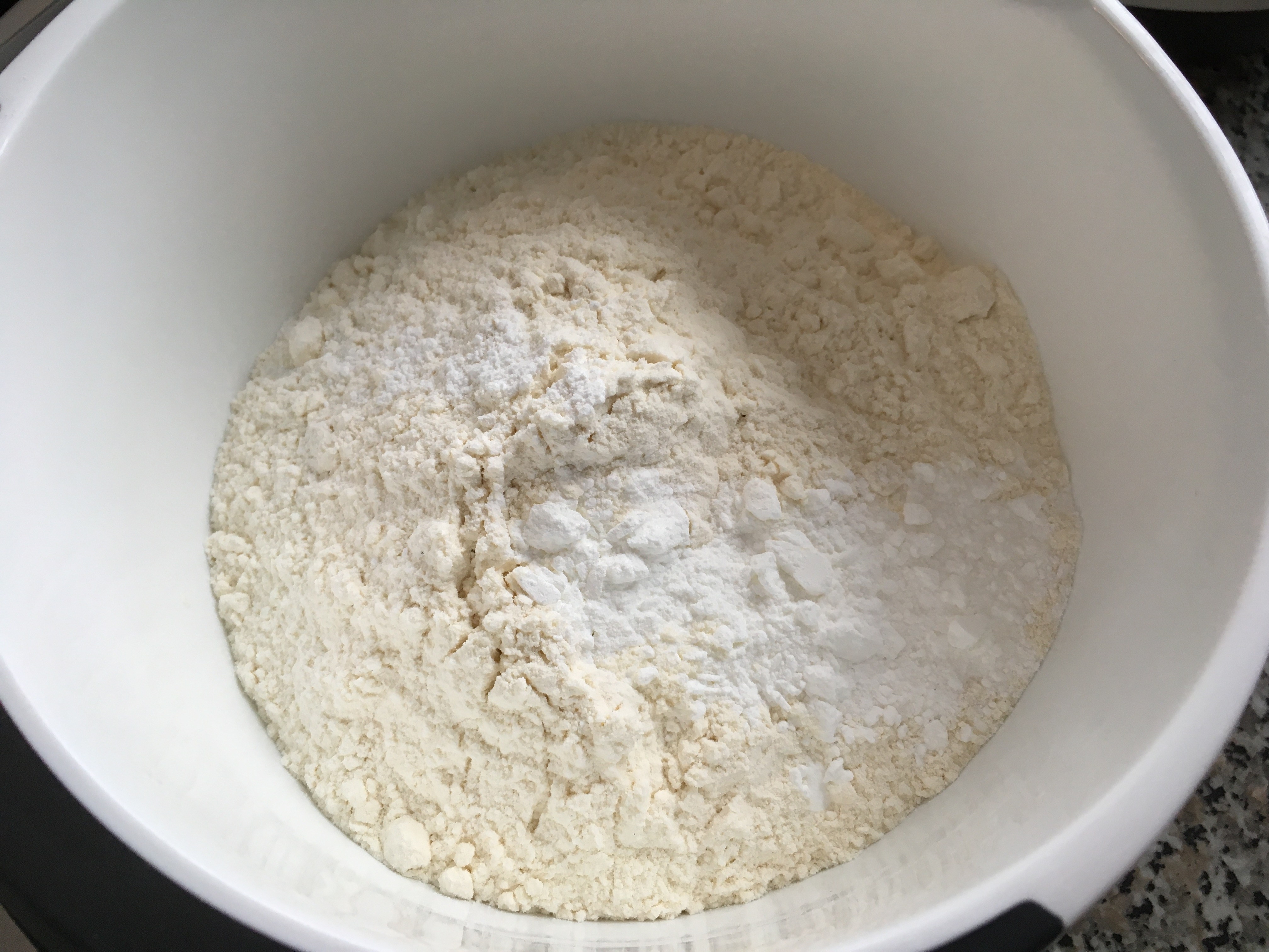 Mehl & Backpulver vermengen Teig Teil 1 - Die Masse mit dem Rest des Mehls zu einem festen Teig verkneten; 60 Minuten kühlen.