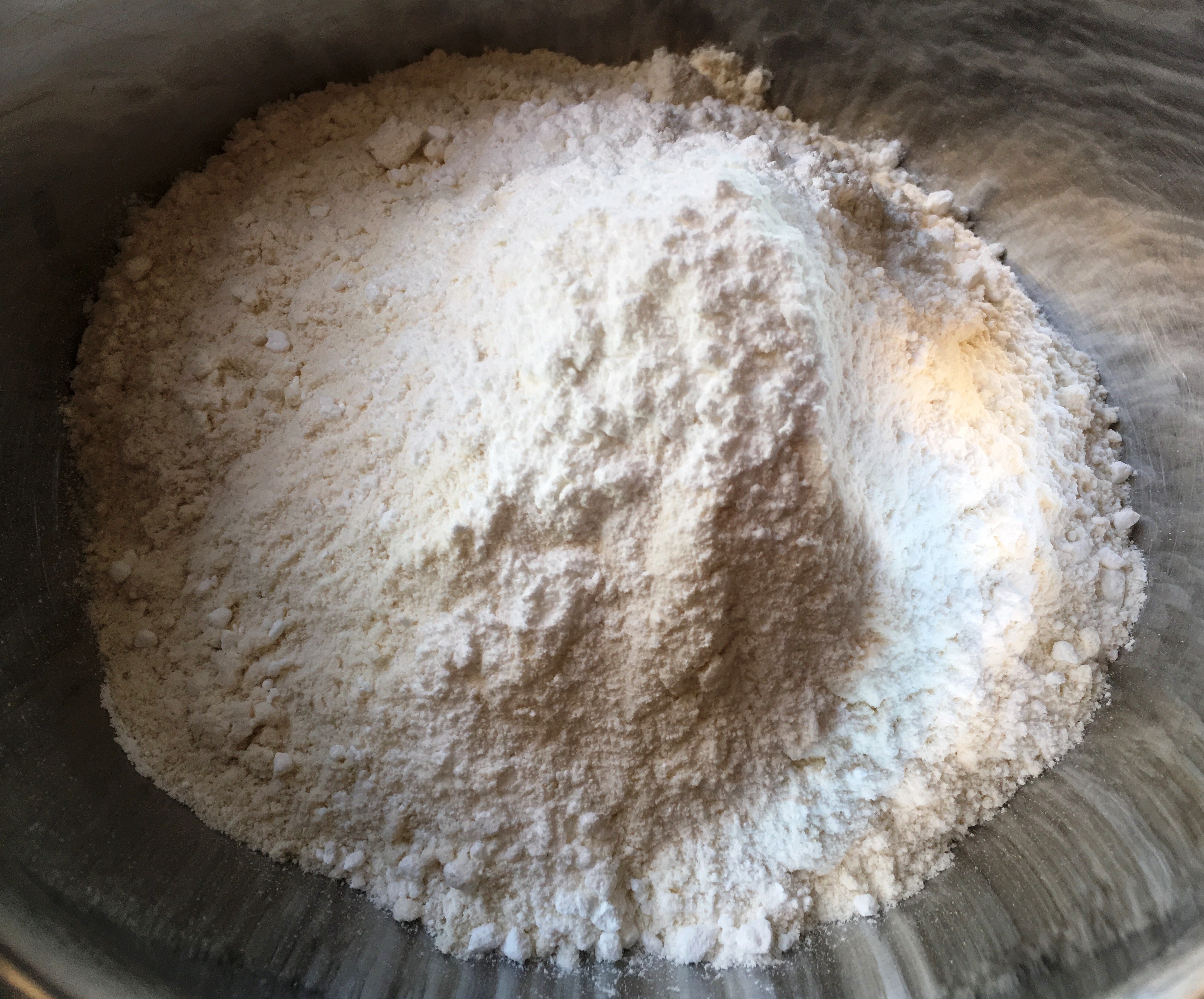 - Mehl mit Backpulver vermischen – es kann auch in Teilen Vollkornmehl verwendet werden.