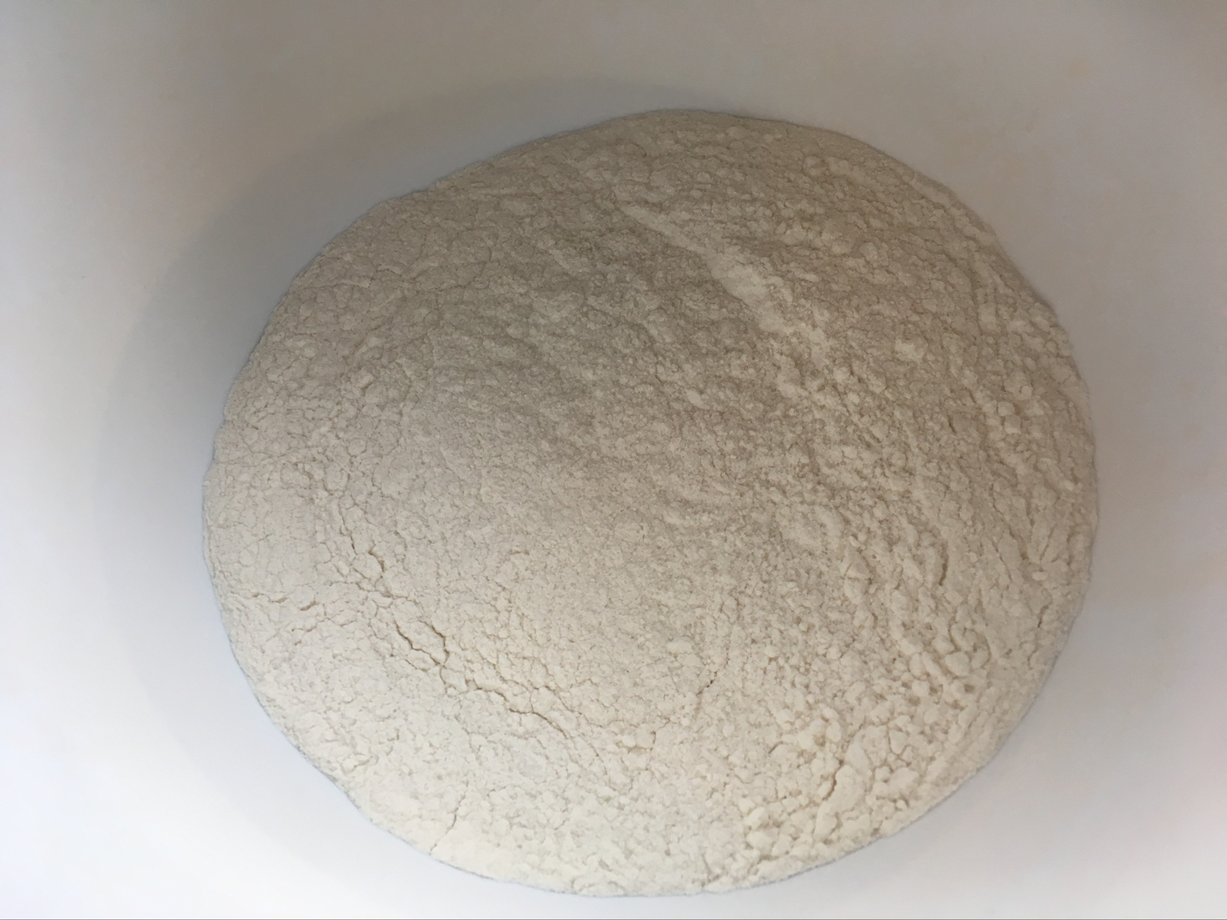 1. Mehl in eine große Schüssel sieben und eine Mulde in die Mitte drücken.