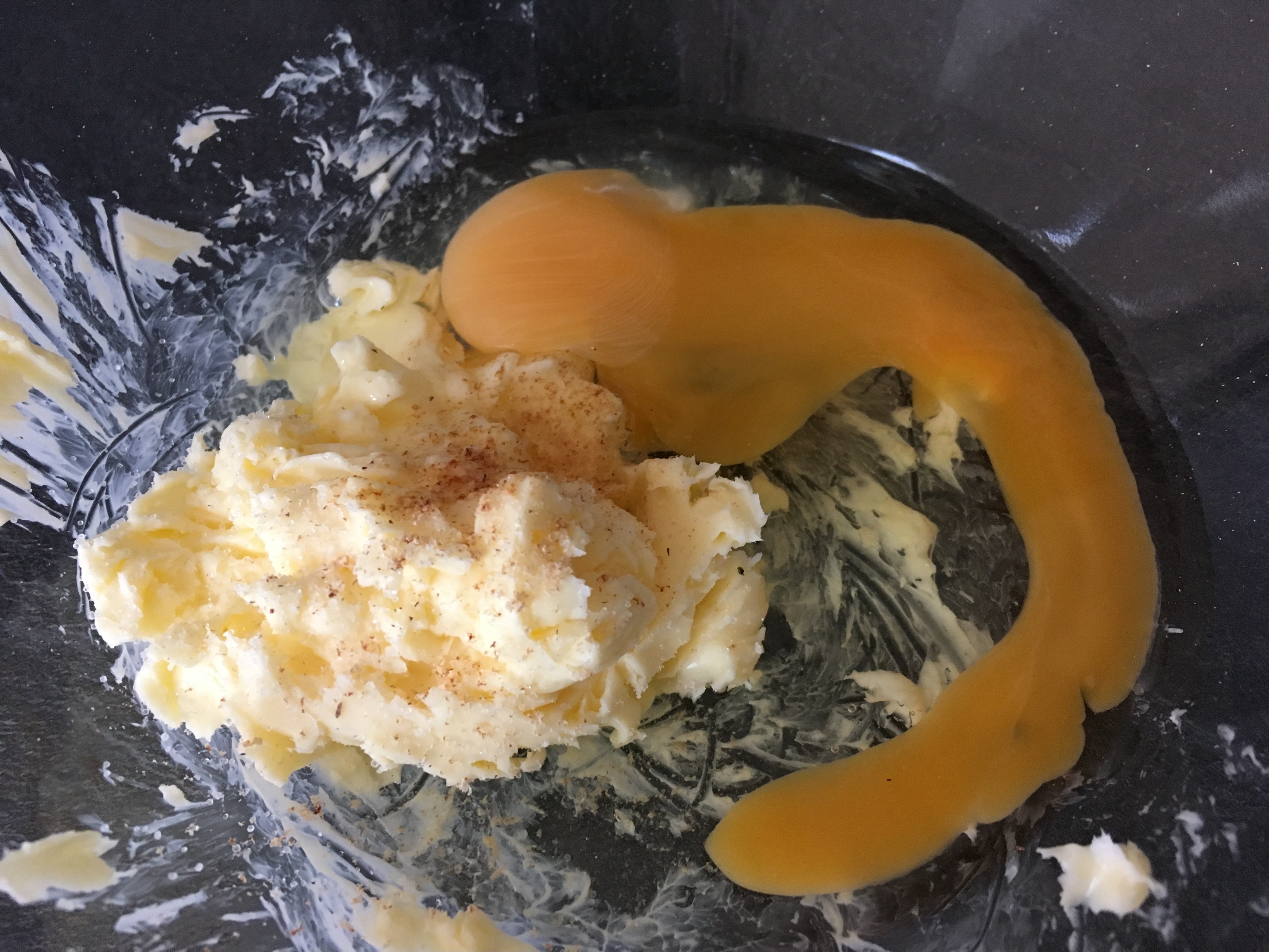 1. Butter schaumig rühren. Salz, Ei und Muskat untermengen.