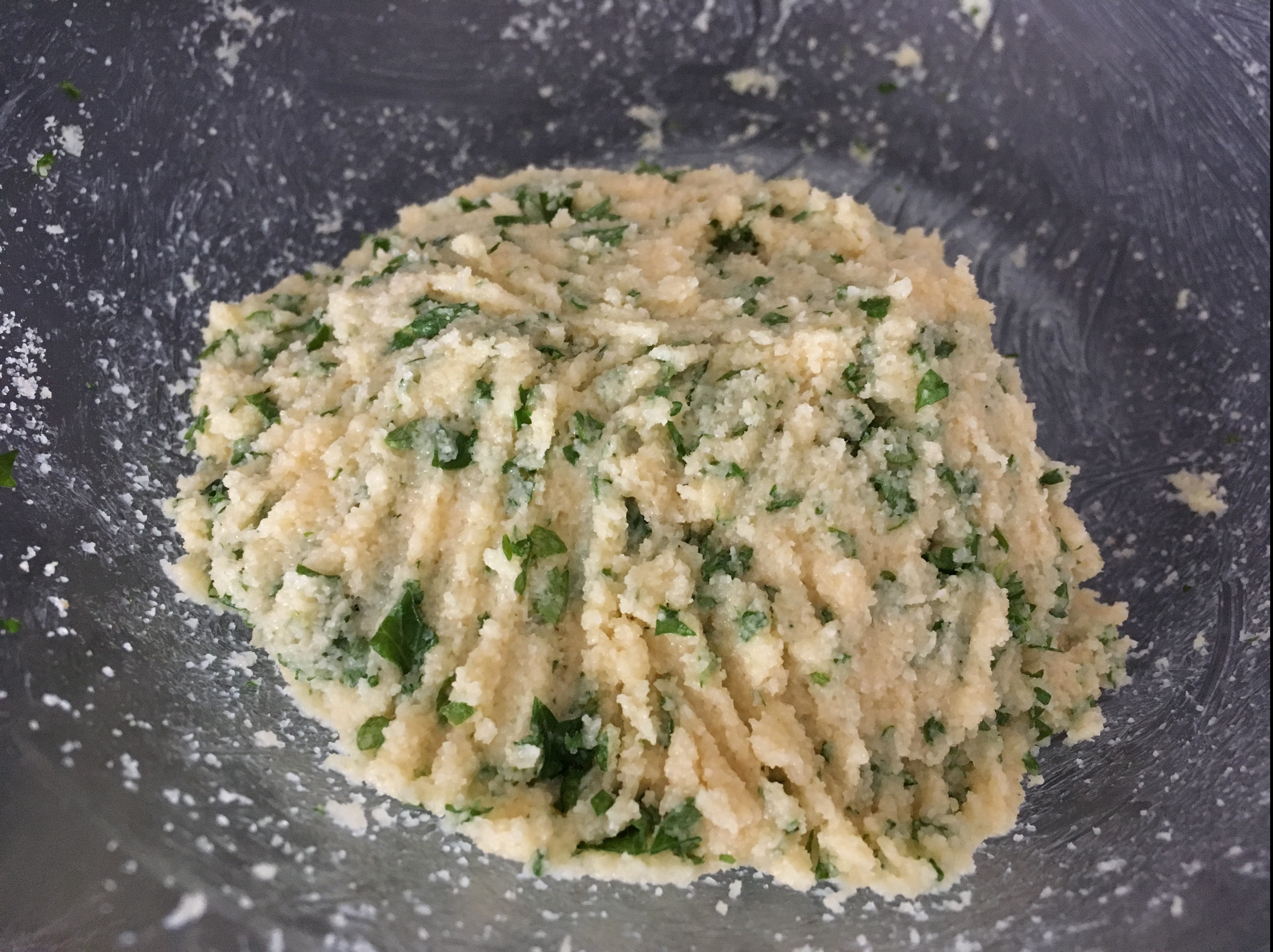 2. Nach und nach so viel Grieß einrühren, dass ein gut formbarer Teig entsteht.