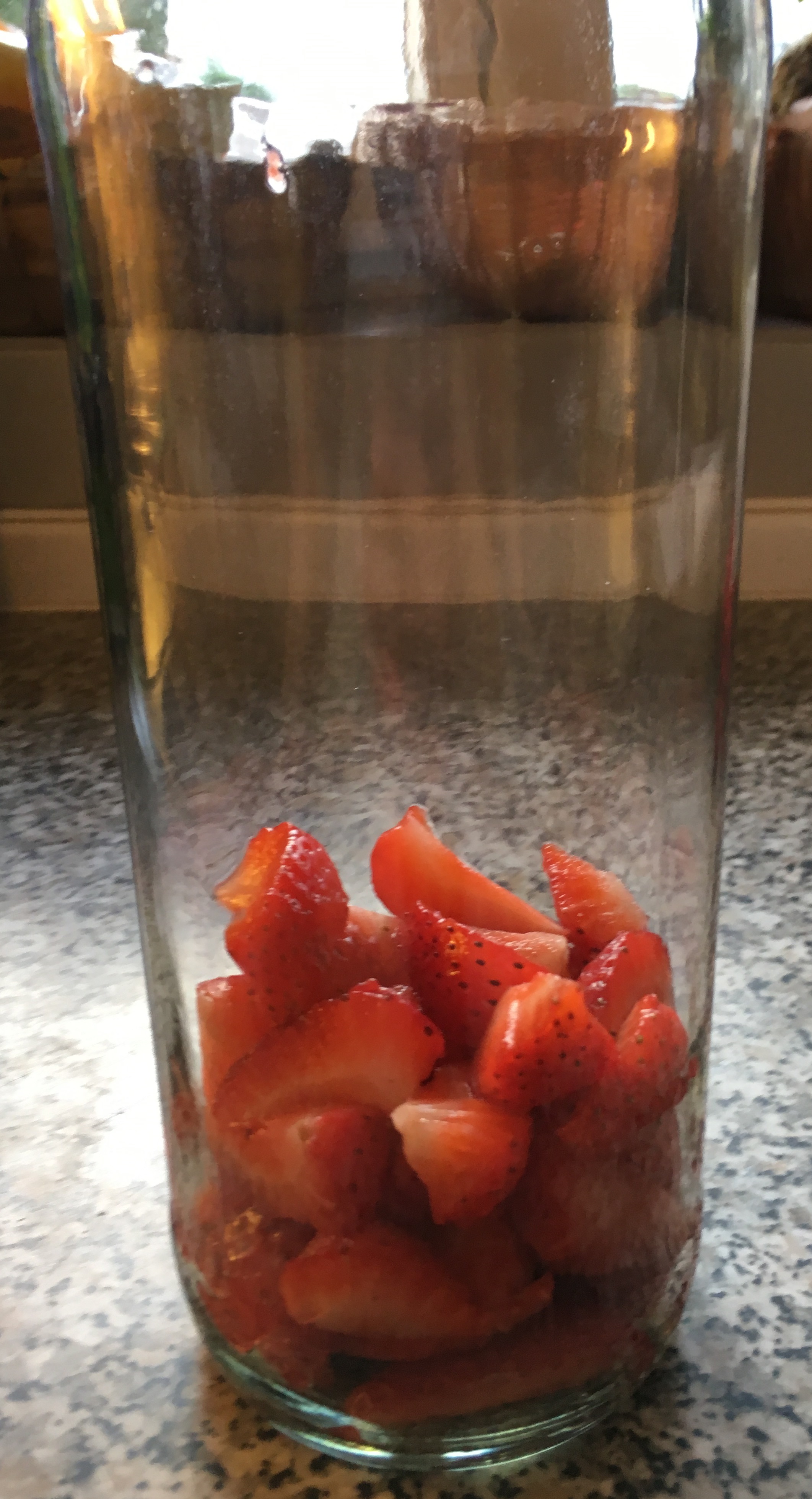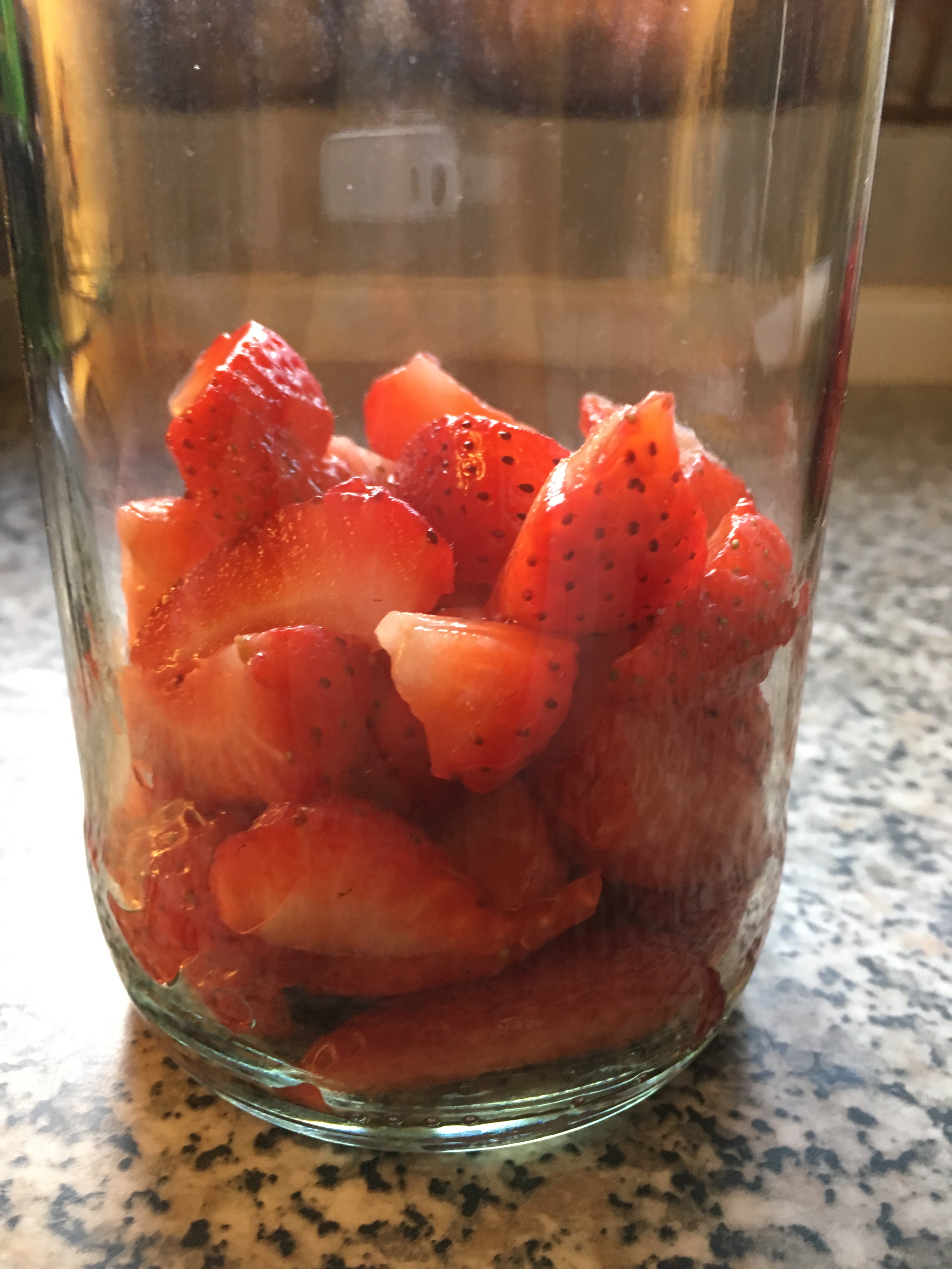 Erdbeeren säubern - Die Früchte in ein hohes Schraubglas füllen,