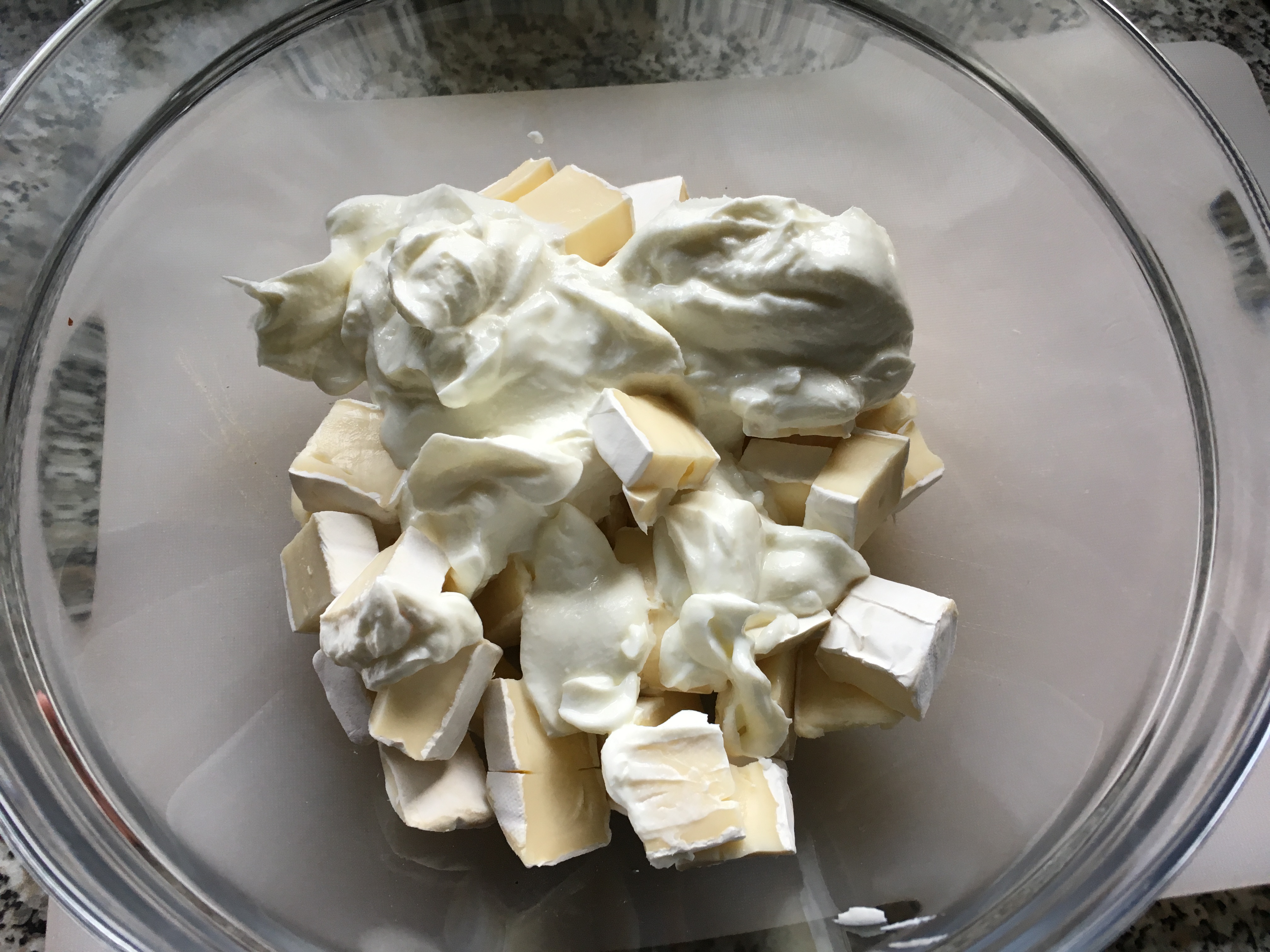 1. Camembert zerkleinern Deutlich mehr zerkleinern, ich habe das später nachgeholt.