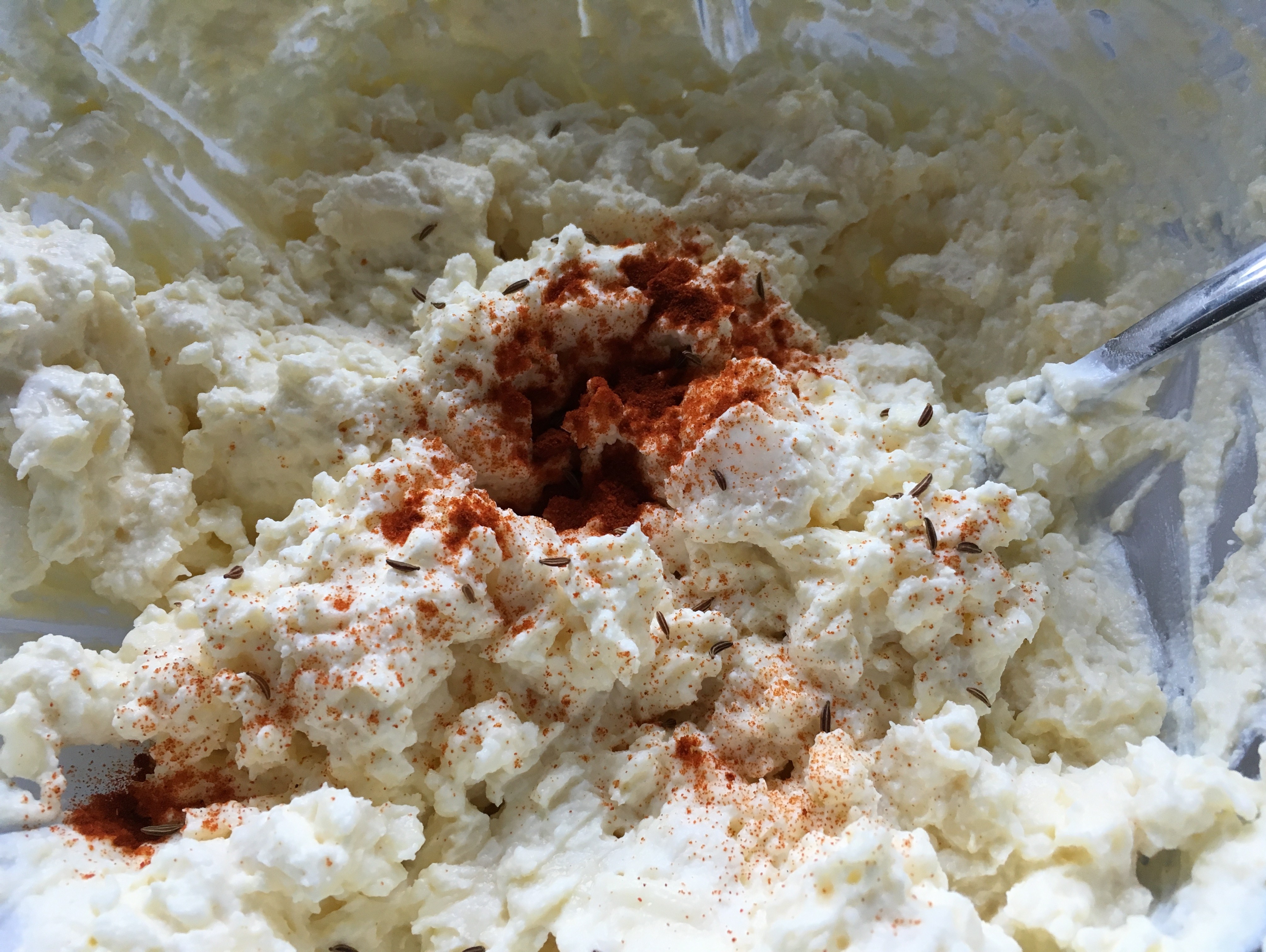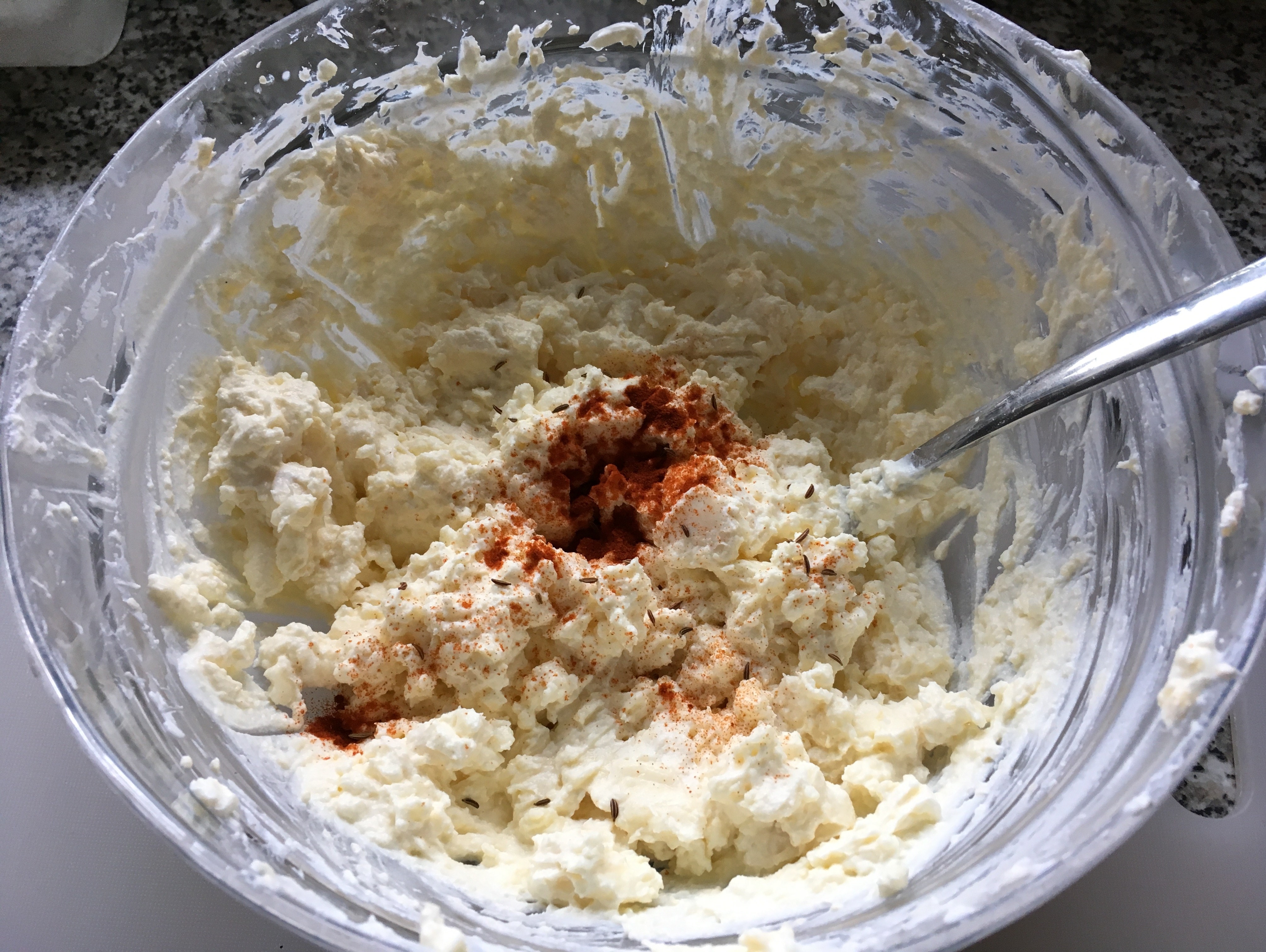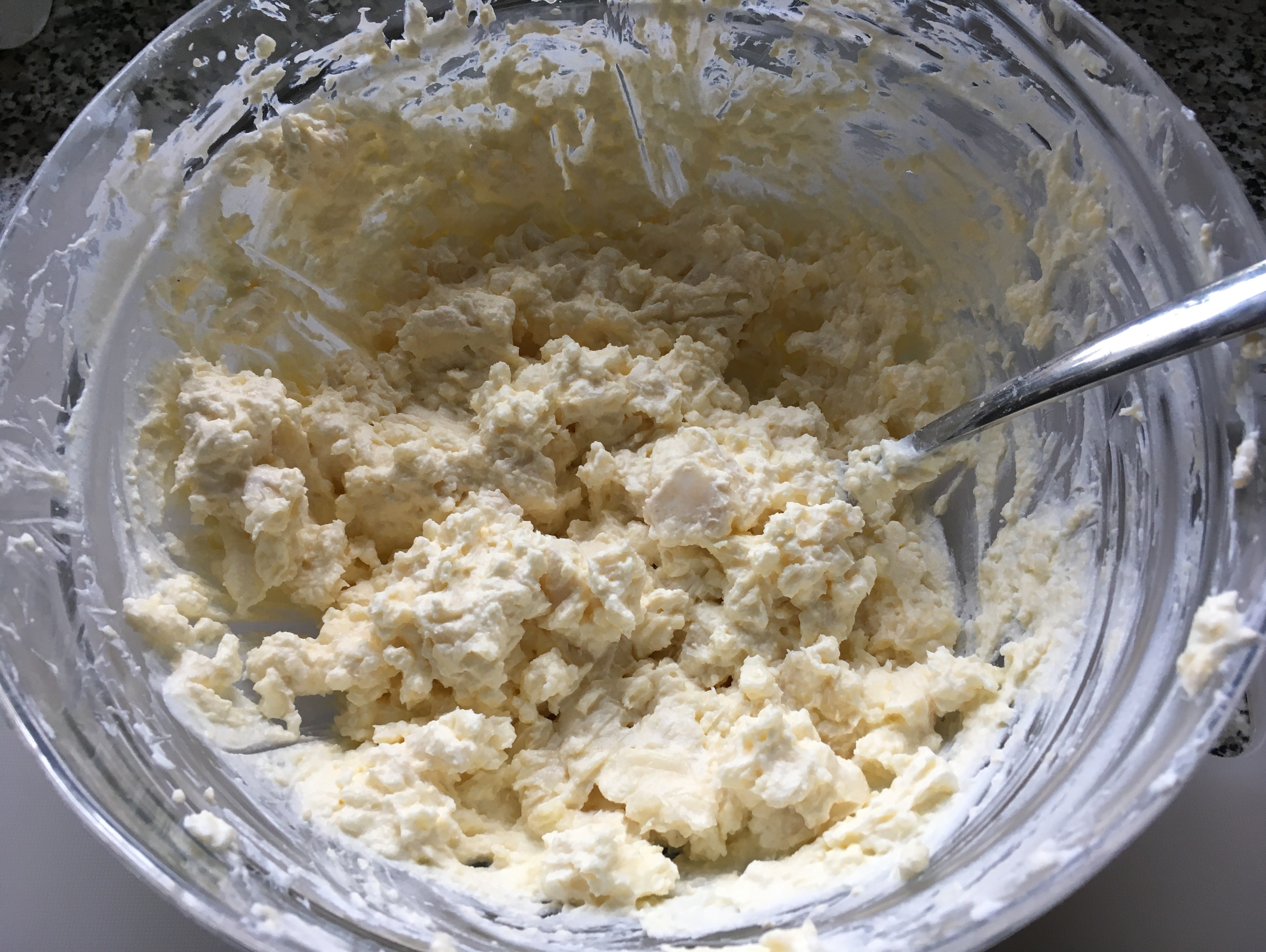 2. und mit Butter und Topfen mit einem Handrührgerät mixen. Die Gabel ist hier für das erste ordentliche Durchmischen ein gutes Werkzeug 🙂