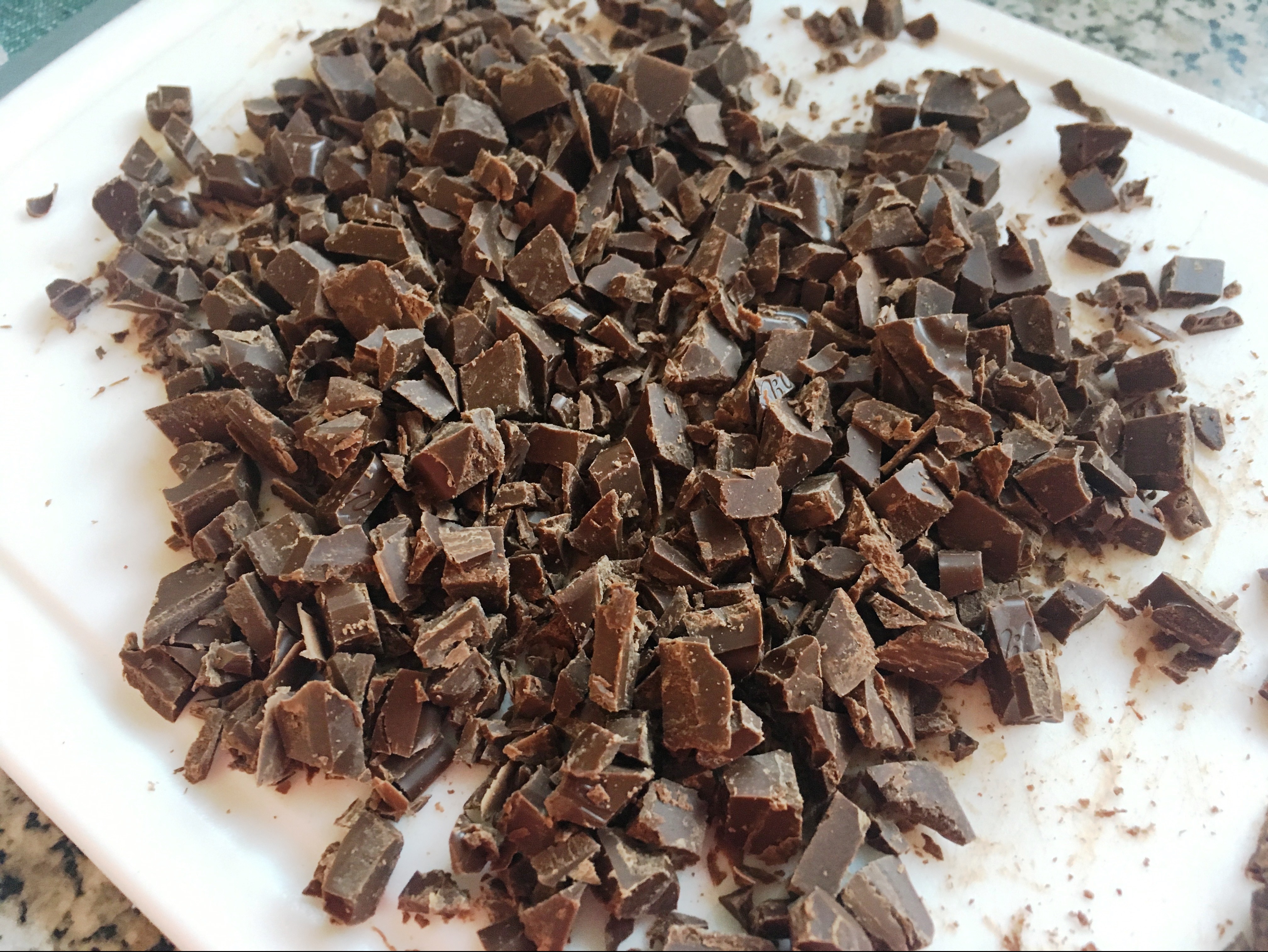 - 100 g Schokolade (möglich sind alle Geschmackssorten. Sind die Kirschen sehr süß, würde ich Bitterschokolade nehmen, bei Sauerkirschen eher Vollmilch) in meinem Fall Zartbitterschokolade