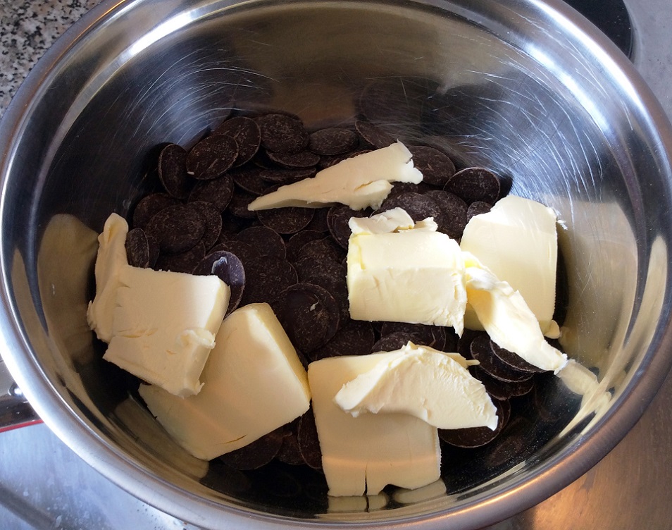 - Die Schokolade mit der Butter in einem Wasserbad schmelzen.