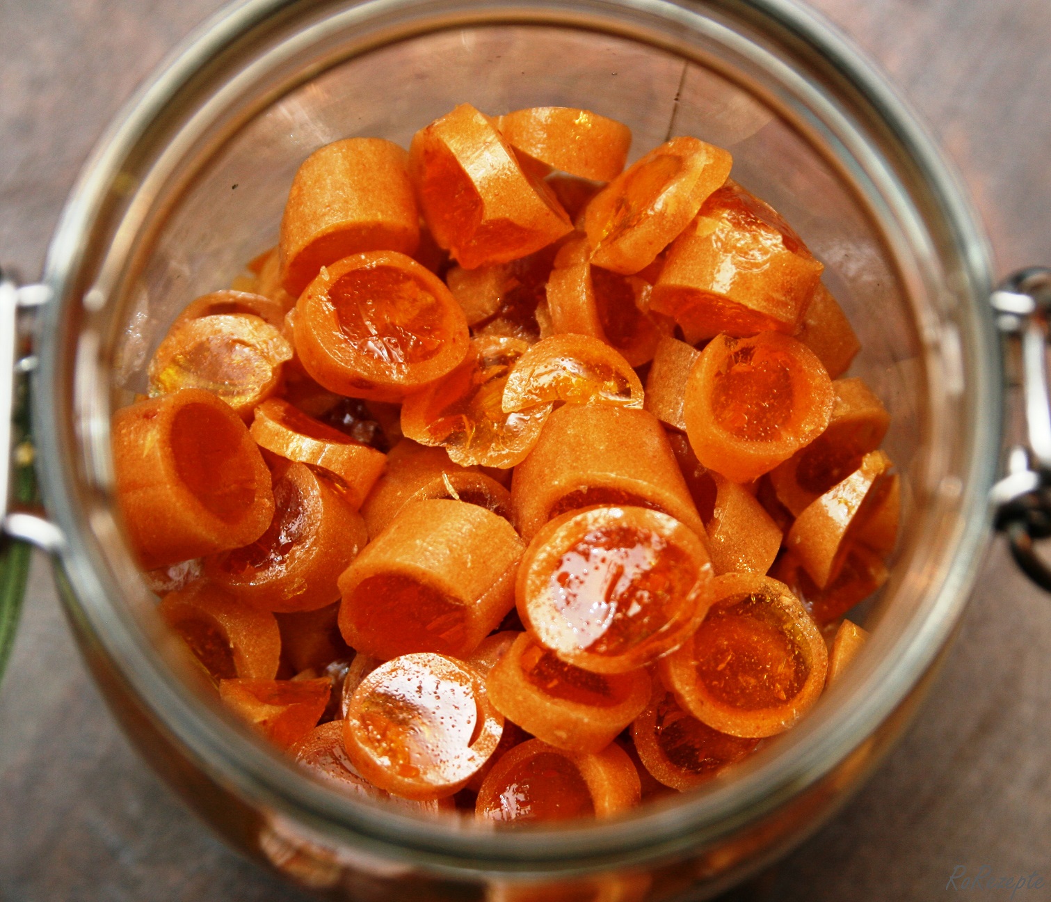 Kommen wir zurück zu unseren Københavner, welche einen Ananaskern mit einem schlanken Vanillemantel haben. Sie sind einfach richtig lecker, und lutschen sich so schnell weg, da ist nur noch ein halbes Glas übrig. Wie ihr sehen könnt 😉