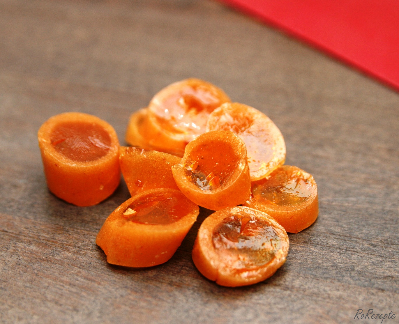 Aromen zugeben vermengen ** Die Herstellungsweise von Punkt 4 und 5 ist analog des Rezeptes im Buch. Allerdings würde ich das an dieser Stelle anders machen. Das Einmanschen der Aromen und Farben ist nicht nur schwierig, verfärbt eure Hände, habt Farb- bzw. Aromaverluste und währenddessen ist euer zweiter Bonbonmasseteil auch kalt geworden. D.h. ihr kippt die Hälfte eurer rohen warmen Bonbonmasse nicht auf die Silikonmatte, sondern in einen zweiten Topf, welchen ihr vorher schon etwas erwärmt habt. Anschließend mischt ihr beide Tele entsprechend der Aroma/Farben/Pulver aus Punkt 4 und 5. Wenn beide Massen homogen vermengt sind, kippt ihr diese etwas getrennt voneinander auf eure Silikonmatte und lasst es etwas abkühlen, sodass ihr mit euren Fingern an die Masse rangehen könnt (ich bin da wie Rikke etwas abgehärtet ;).