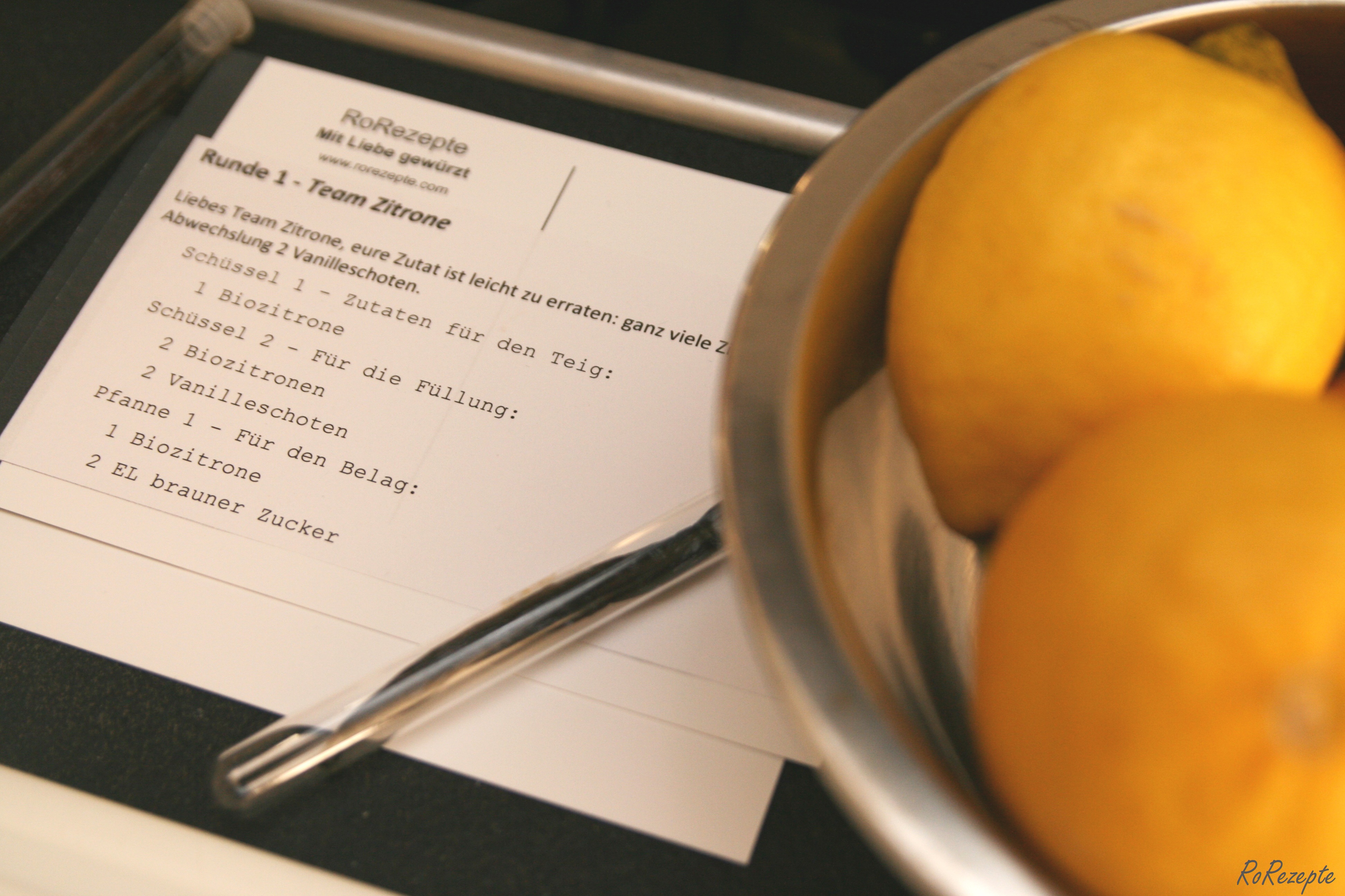 Nach dem Begrüßungssektchen ging es direkt an die Kochlöffel. Wir losten Kochteams aus und starteten mit den Grundzutaten – Team Zitrone, Team Tarte & Team Galette gaben alles: